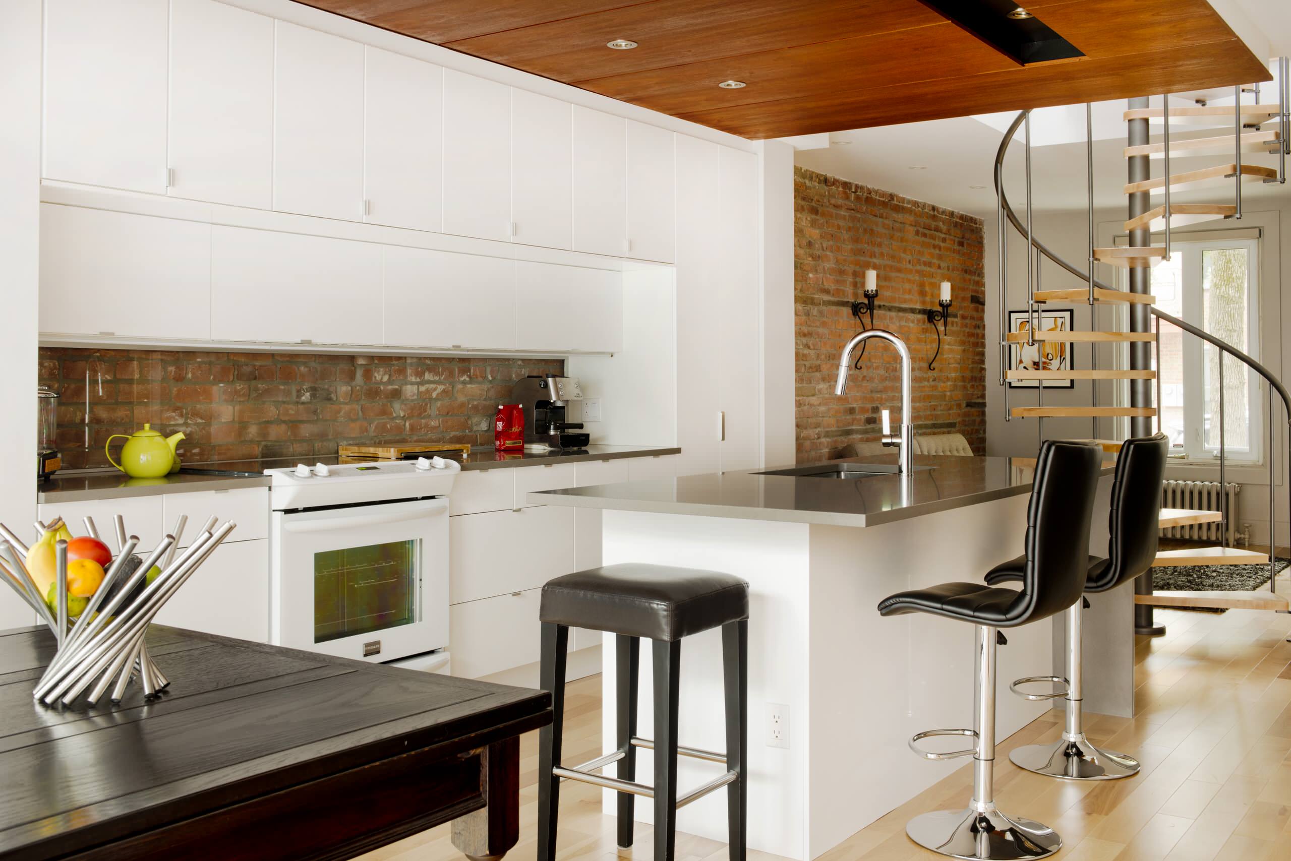 À Toronto, ce loft raconte une magnifique histoire de style. Le salon est magnifié par deux pans de mur mis à nu qui révèlent un mariage de pierres époustouflant. Associé au style moderne et design du lieu, ce chaos esthétique crée un contraste de taille à l’origine d’une décoration qui a du chien.