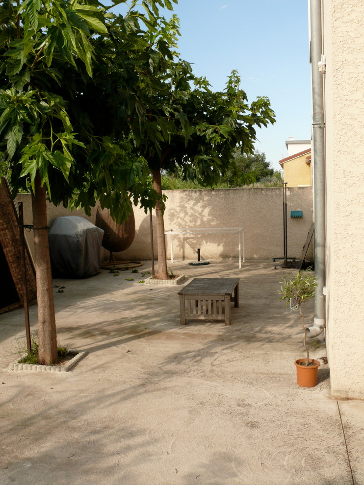 Avant. Dans la commune de Palavas-les-Flots, cette terrasse minérale disposait d’un beau potentiel malgré son manque d’aménagements. Les deux arbres au feuillage développé créaient une ombre naturelle précieuse et contribuaient déjà à intimiser les lieux. Chargée de la construction d’une extension et de l’aménagement des extérieurs, l’architecte Nathalie Boher a proposé l’ajout d’un Jacuzzi.