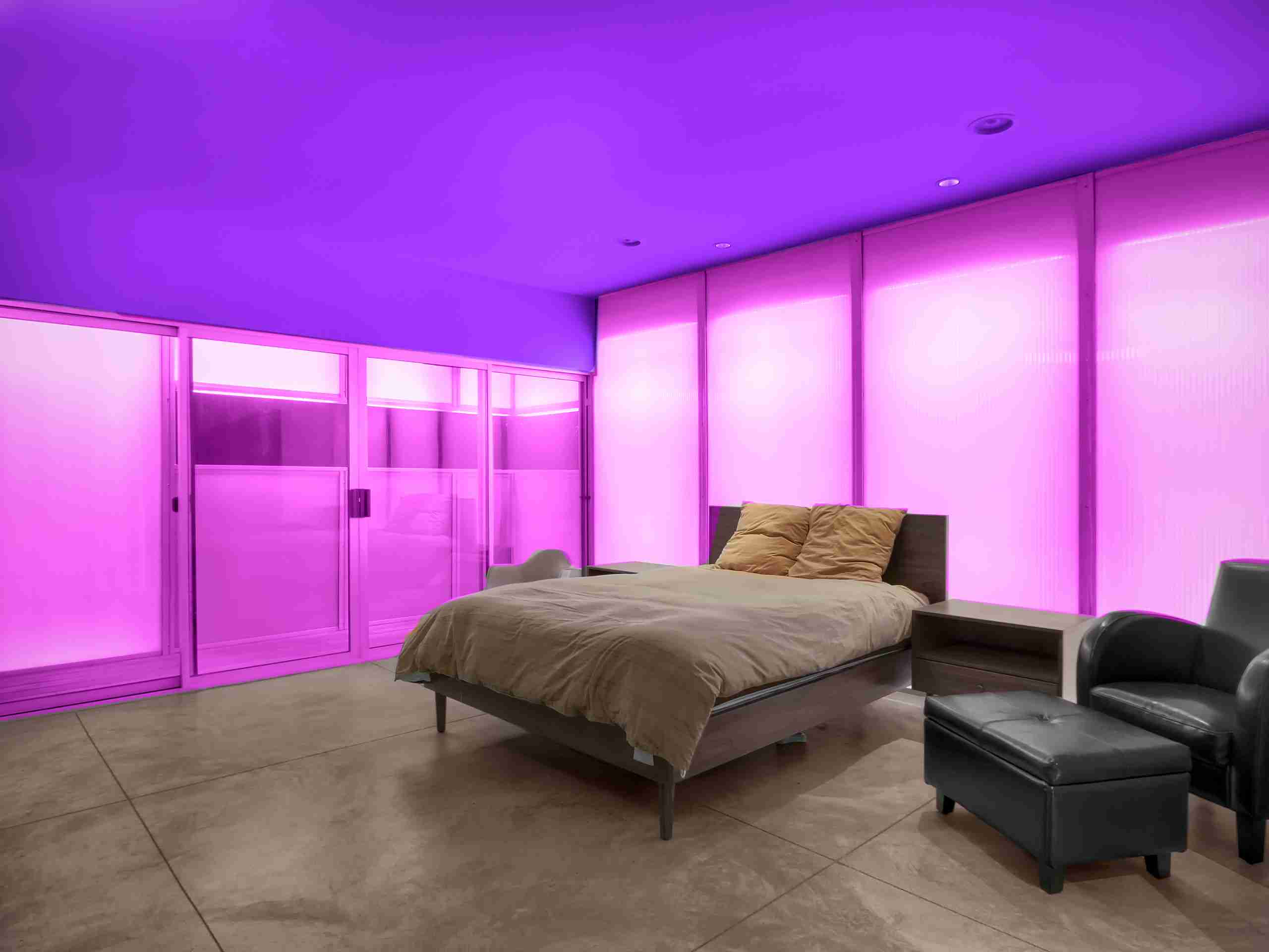 Jouez la carte de la couleur en illuminant vos murs ! Si votre pièce a été peinte de façon très colorée, l’éclairer avec des néons va rehausser le côté pop et flashy du lieu. Attention cependant à choisir une teinte que vous aimez vraiment pour ne pas vous en lasser ou à opter pour un néon à couleur changeante.