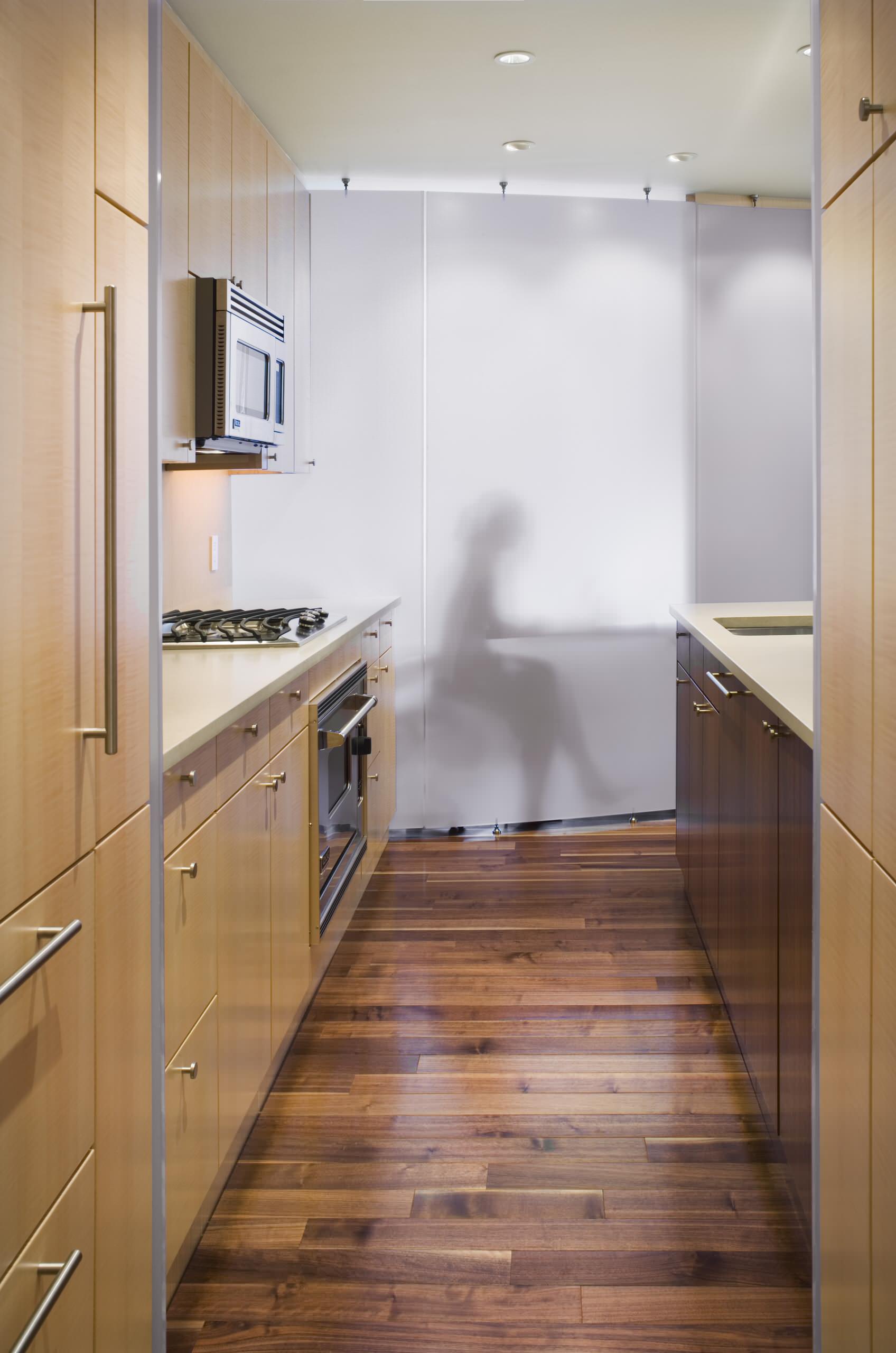 De plus, une baie vitrée faisant perdre de la surface de rangement, souvent précieux dans une cuisine, tous les murs seront les bienvenus pour installer des placards supplémentaires !