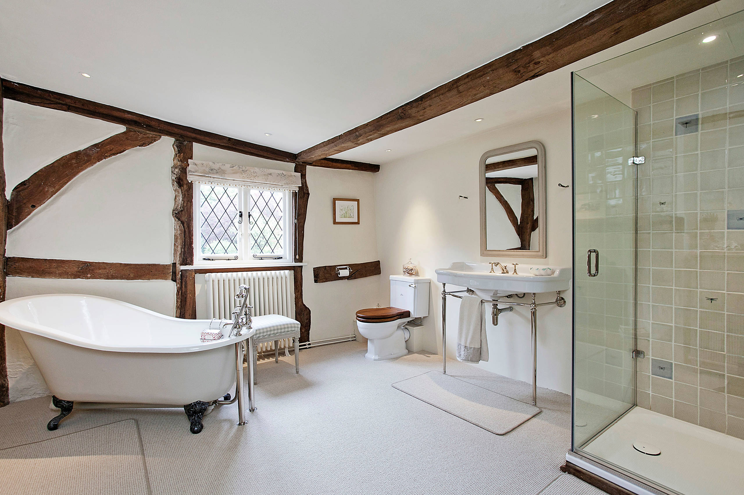 La moquette est le plus douillet des matériaux pour se déplacer pieds nus, alors pourquoi pas dans une salle de bains comme dans cette maison à Londres. « De la moquette dans la salle de bains ? Jamais de la vie ! », tempête Carina Nahmani, maître d’œuvre de la société tout corps d’état Qualirenovation. Et de s’en expliquer : « Des clients m’appellent parfois deux ans après les travaux pour me dire qu’ils ont eu un débordement dans leur salle de bains. Il suffit qu’ils n’aient pas entretenu le siphon de leur baignoire et de leur douche ou le filtre de leur machine à laver en les démontant régulièrement pour les nettoyer, et c’est l’engorgement. Surtout quand il y a des cheveux longs ou un animal dans la famille. Alors imaginez avec de la moquette au sol, vous pourriez immédiatement la jeter », affirme la pro.