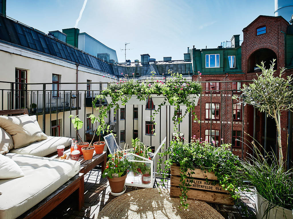 Tout pousse sur un balcon, même des légumes ! Pourquoi ne pas vous lancer dans l’aventure d’un potager, surtout si vous avez des enfants, afin de leur apprendre le rythme des saisons et le plaisir de jardiner ? Même un petit balcon étroit peut recevoir des bacs ou des pots, pour peu qu’ils soient assez hauts afin que les légumes aient suffisamment de terre pour pousser correctement. Offrez au potager une emprise bien définie sur le balcon, afin de garder de la place pour l’espace repas et détente, en gardant à l’esprit que ces plantes vont pousser et beaucoup gagner en volume, notamment les tomates.