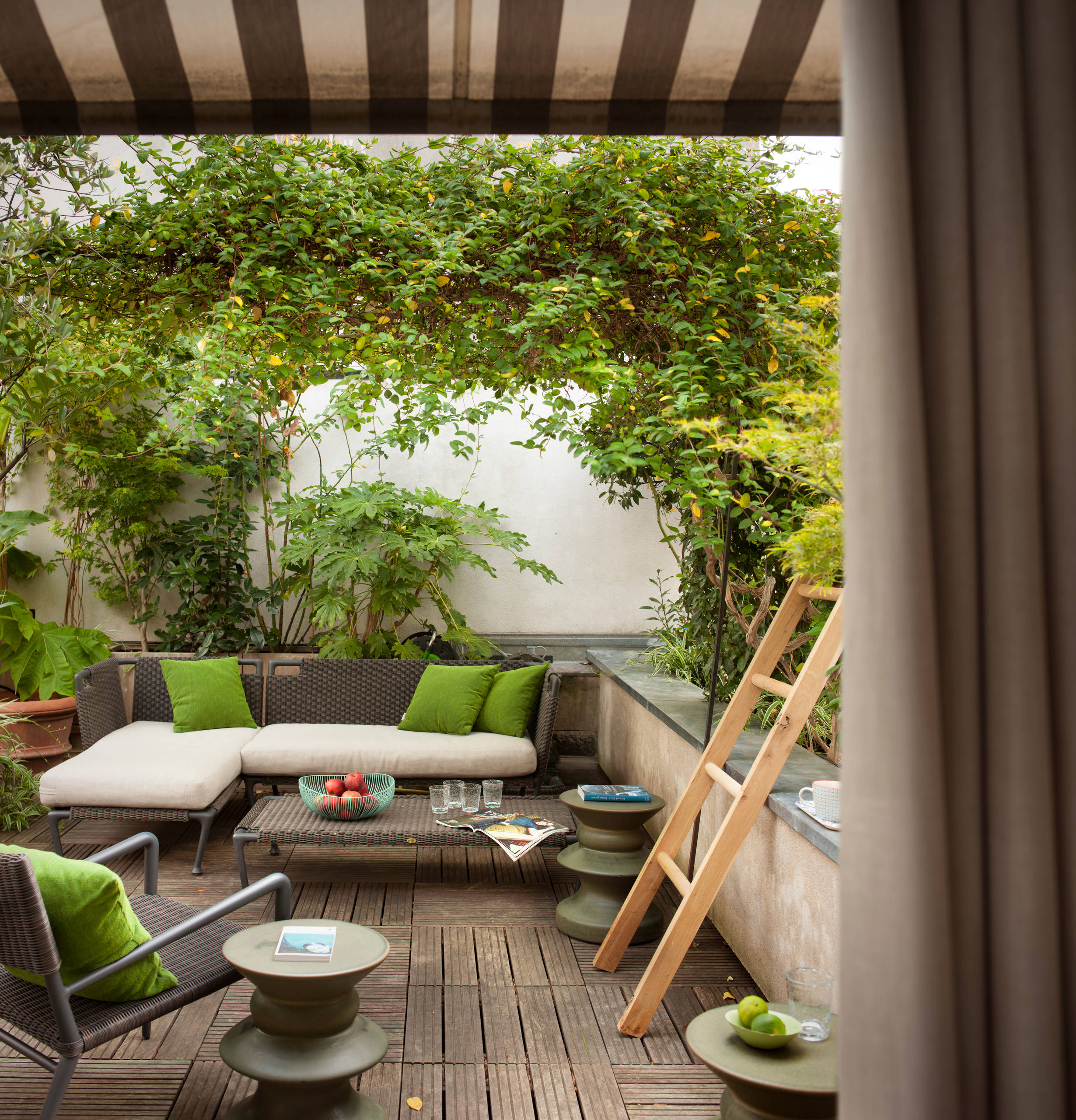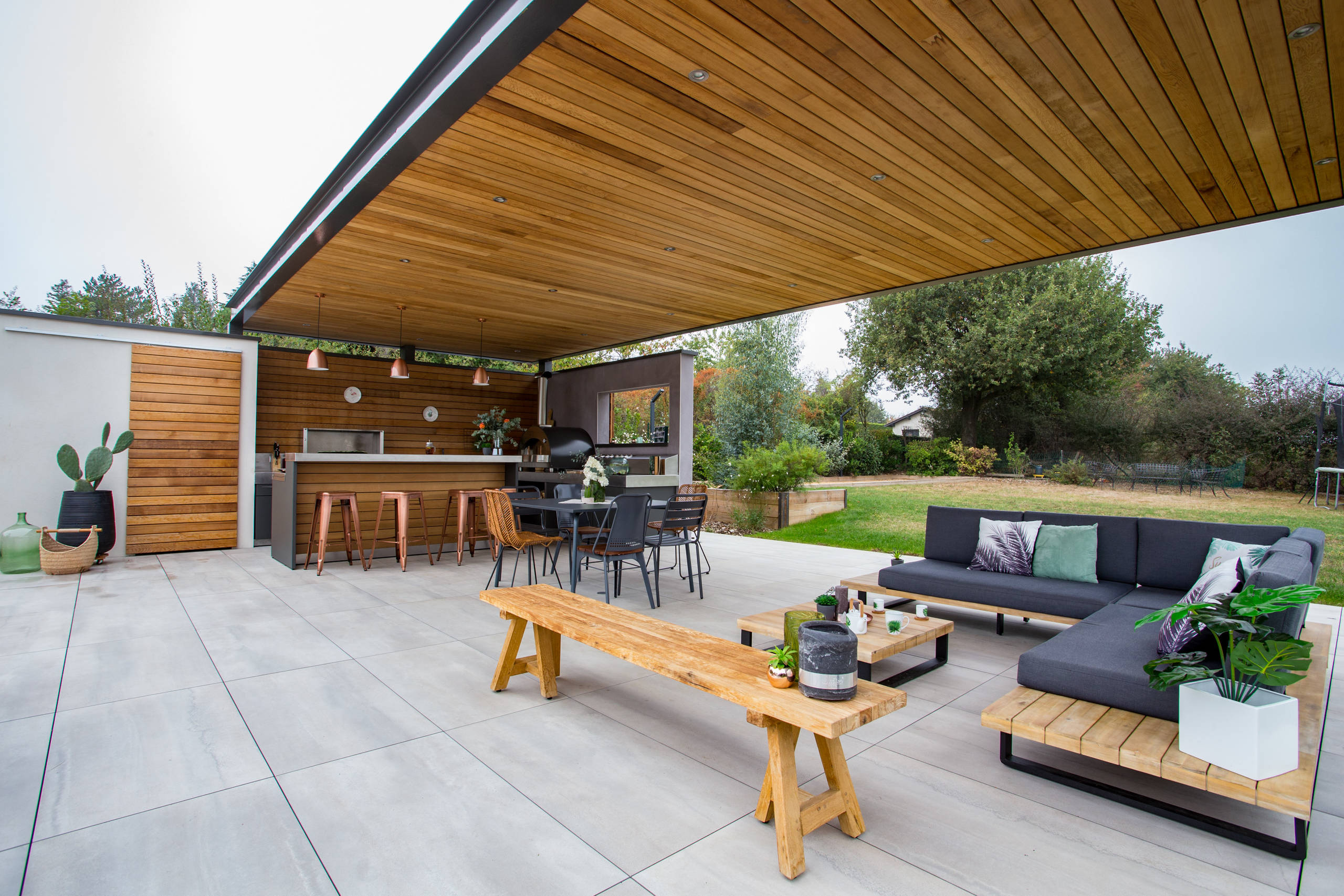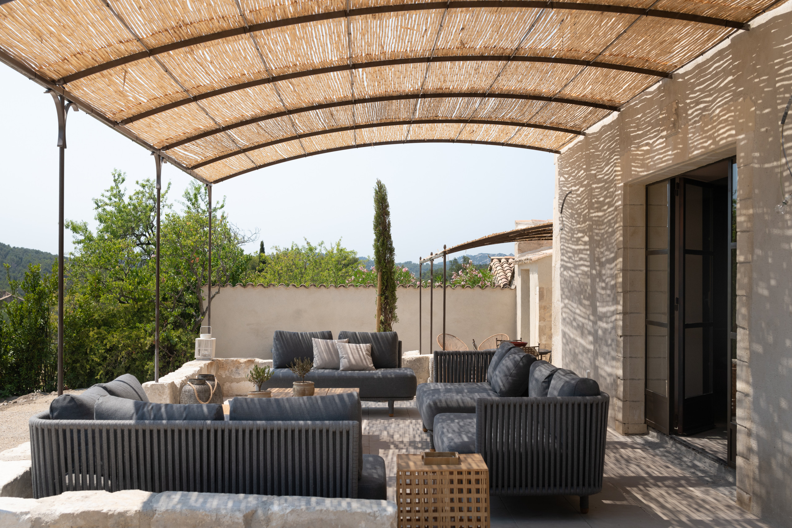 Toujours dans l’idée de profiter de son extérieur au maximum, grâce à l’aménagement d’un espace abrité du soleil et de la pluie, la pergola fait sans aucun doute partie des grandes tendances cette année. « Les pergolas ont cet avantage d’être des structures multifonctions qui permettent de profiter plus longtemps d’un extérieur. Elles créent de l’ombre, abritent de la pluie, protègent des vis-à-vis, délimitent et sécurisent les espaces, peuvent être un support pour des plantes grimpantes ou encore intégrer l’éclairage de la terrasse. Elles peuvent même contribuer à créer une ambiance olfactive si on décide d’y faire grimper une plante odorante, comme le chèvrefeuille », détaille Alexandre Duval.