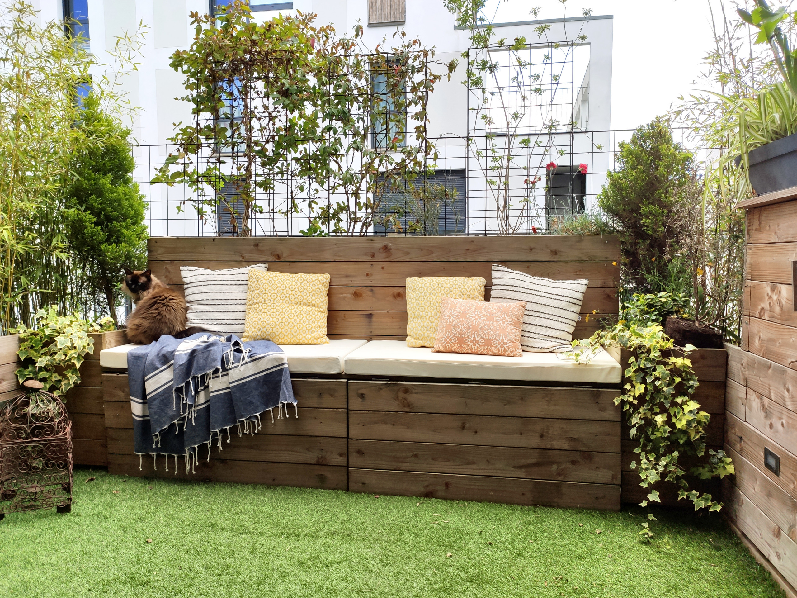 Si le sur-mesure connait un vrai boom dans les intérieurs depuis plusieurs mois, il s’est d’abord démocratisé dans les jardins où l’offre de mobilier est moins développée. L’engouement des propriétaires pour ce type d’aménagements ne faiblit pas et les professionnels des extérieurs sont amenés à en imaginer pour la plupart de leurs projets. « Je fais des aménagements sur mesure dans 90 % de mes projets, notamment des bancs coffres parfaitement adaptés à l’espace disponible. Il y a aussi des demandes pour des installations pratiques dont les produits sont très durs à trouver dans le commerce, comme les structures pour ranger les vélos ou cacher les poubelles », explique Philippe Delage de Luget, qui travaille beaucoup dans des petits espaces multifonctions pour lesquels le sur-mesure est indispensable. Théo Gallibert observe aussi une forte demande pour des banquettes-coffres et les jardinières adaptées aux espaces dans lesquels il intervient.