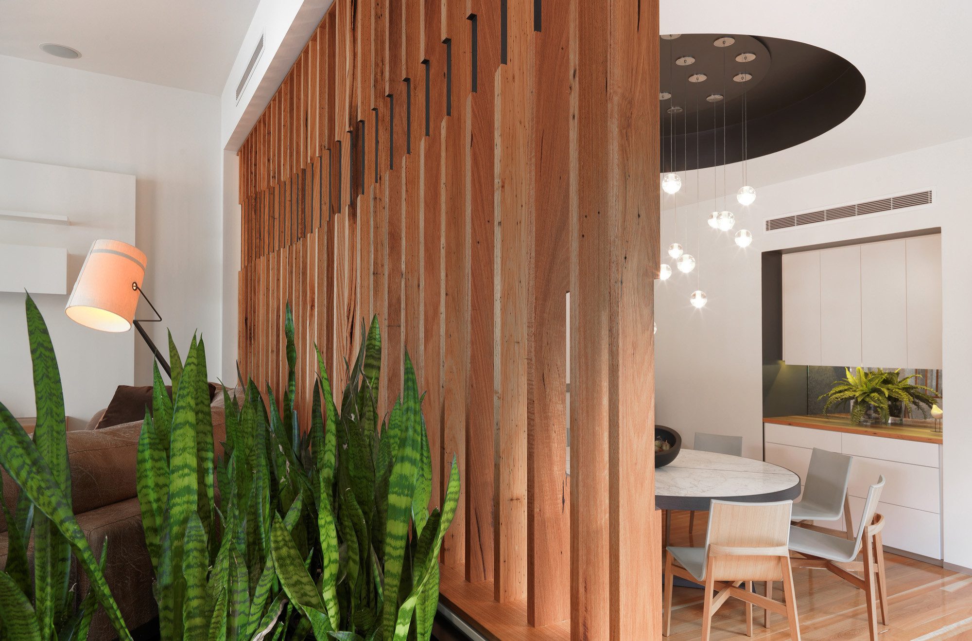 On l'appelle persienne verticale, cloison en lames de bois, ou encore claustra intérieur. Focus sur une nouvelle manière de semi-cloisonner