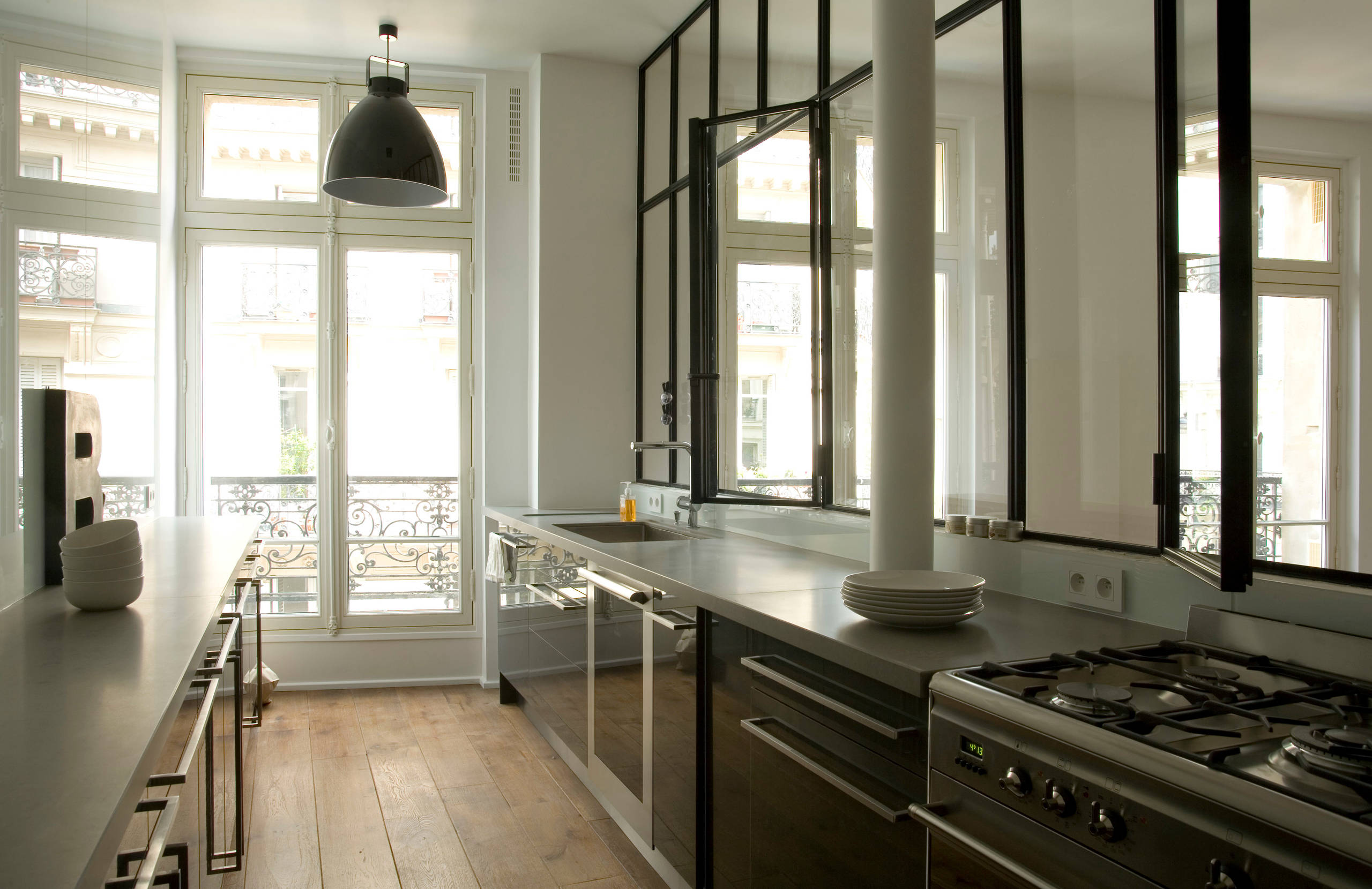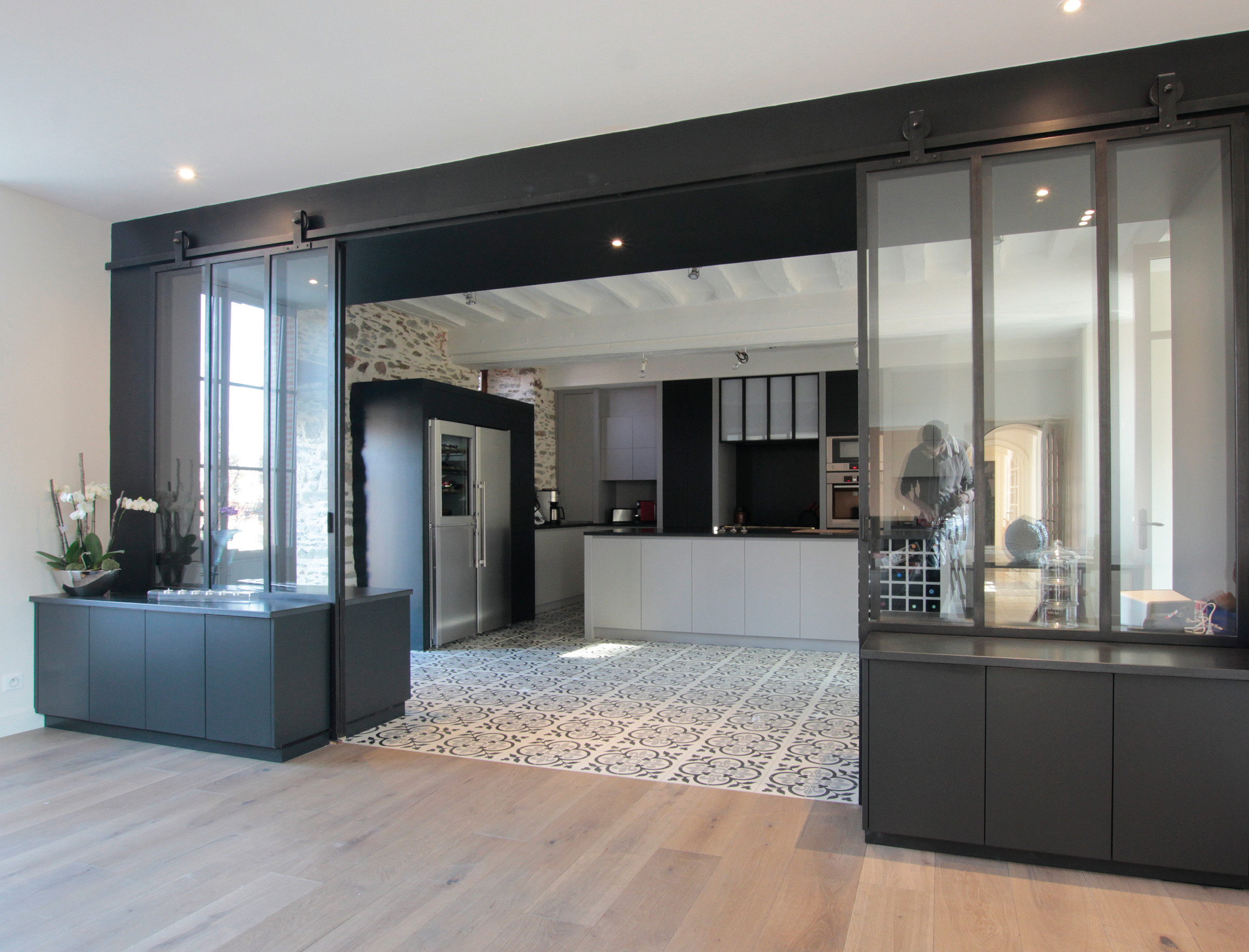 Astuce : Lorsqu’elle est fermée, la verrière permet de délimiter un beau plan de travail dans la cuisine…