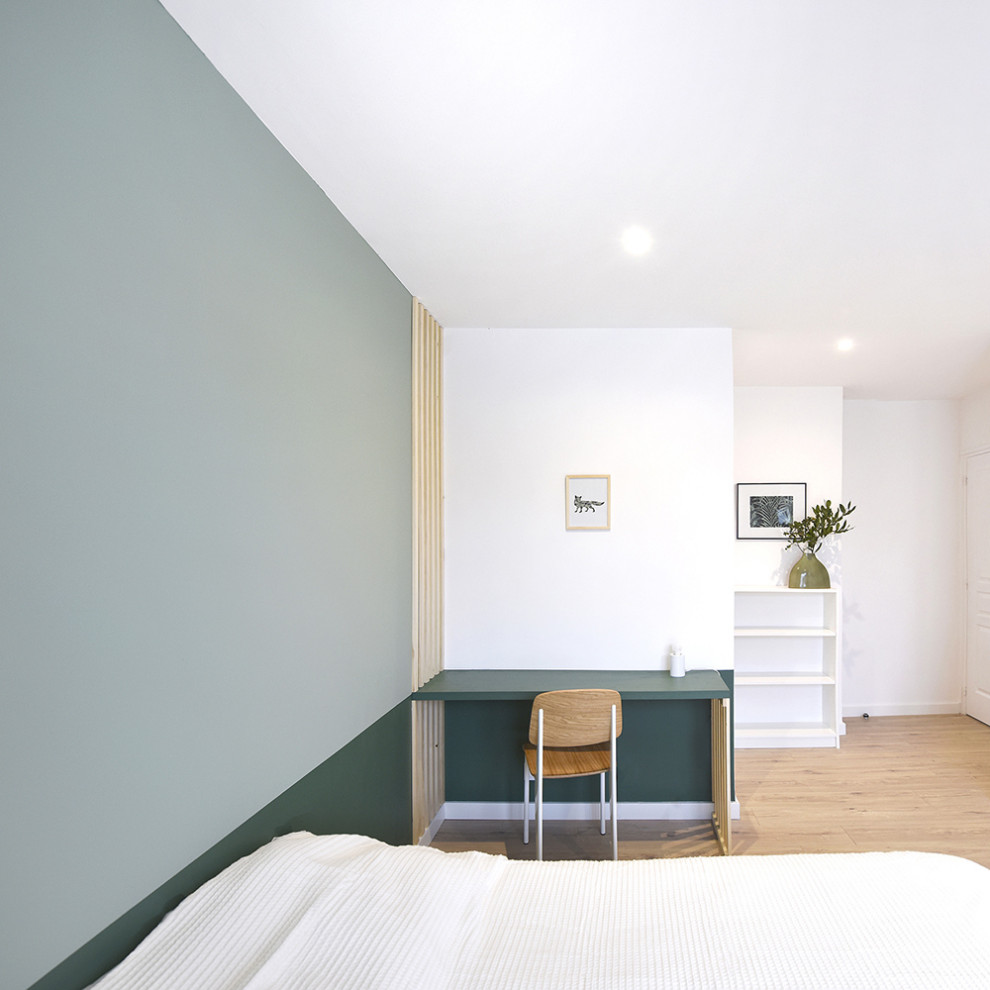 Et il existe une alternative : mettre non pas le bureau, mais le lit dans une alcôve, en mezzanine idéalement. Votre bureau peut ainsi se déployer sur un pan de mur entier, si vous avez besoin de place pour travailler. Et le lit bénéficie d’un vrai effet-cocon, très appréciable. Cette idée peut être mise en œuvre lorsque la hauteur sous plafond, et la configuration de la pièce, le permettent. Votre chambre abrite ainsi deux espaces bien distincts : l’un pour travailler, et l’autre pour dormir.