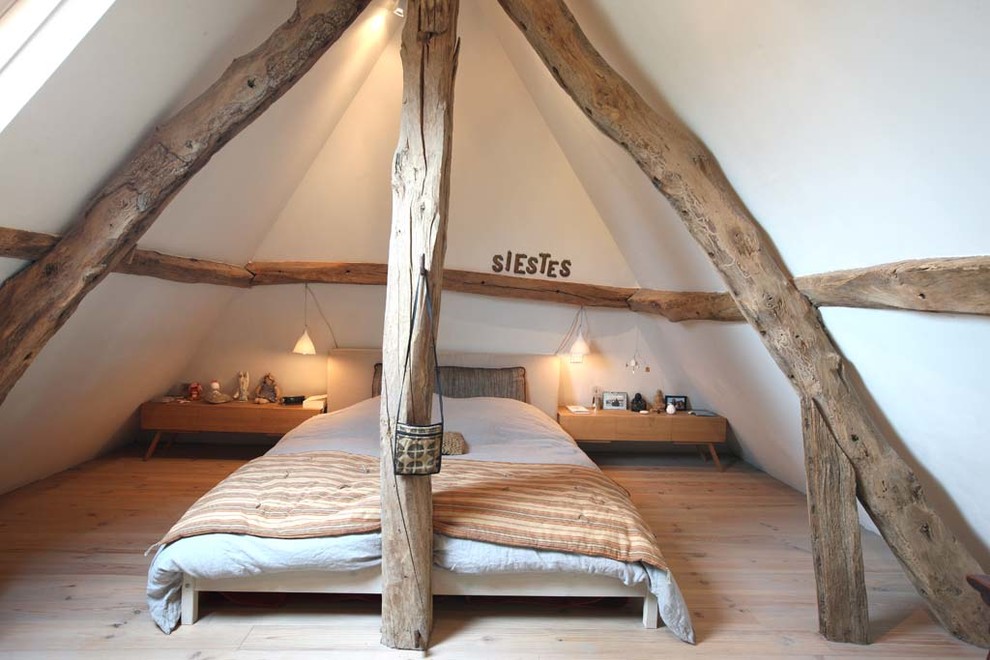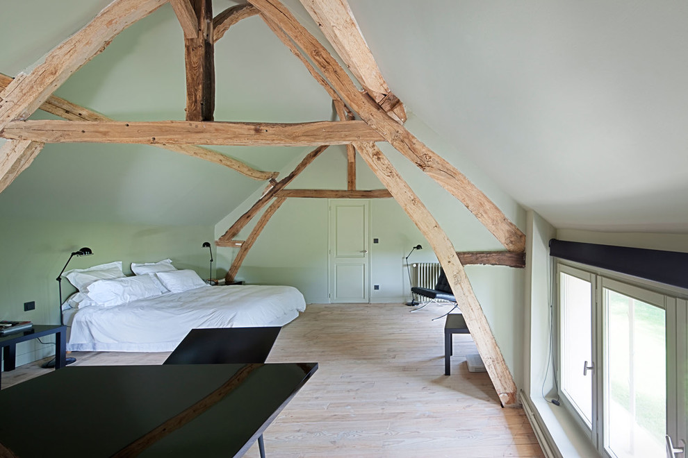 À présent, la réhabilitation de longère se fait en tenant compte de ces espaces. Ainsi, les ouvertures sont retravaillées ou créées de manière très moderne : fenêtres de toit type Velux ou en bandeaux. L’apport de lumière naturelle est recherché pour mettre en valeur et illuminer les combles, et ainsi bénéficier de l’orientation sud à l’intérieur. De plus, la charpente d’époque est révélée et rehaussée. Véritable atout charme, les fermes (pièces de charpente) en bois apportent une note rustique et authentique à l’espace. L’isolation de la toiture se fait donc par l’extérieur, cela permet de laisser les boiseries apparentes.