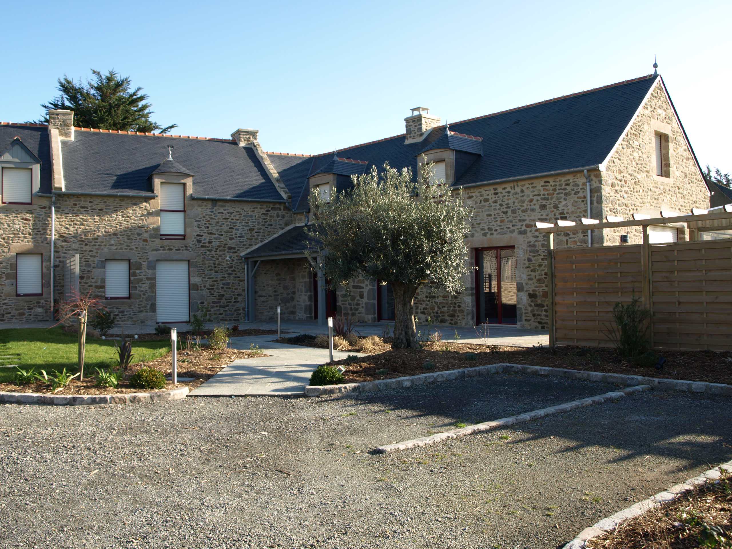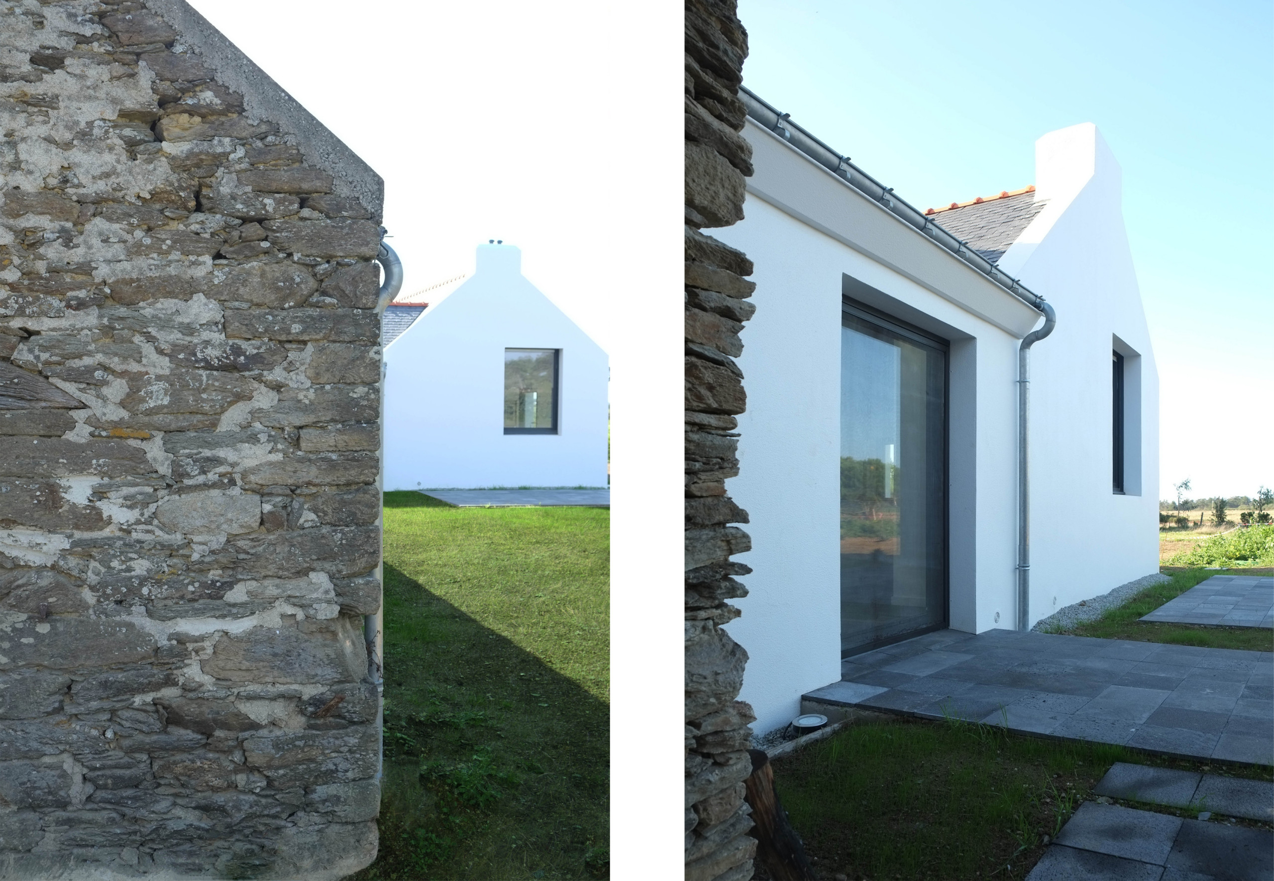 Voici un exemple de réhabilitation d’un mur pignon d’une longère qui a conservé sa forme d’origine et préservé le conduit de cheminée. De larges baies vitrées ont été également créées dans le but d’apporter de la lumière naturelle et des vues sur l’extérieur environnant. La réhabilitation est pensée de manière à allier le contemporain et le traditionnel.