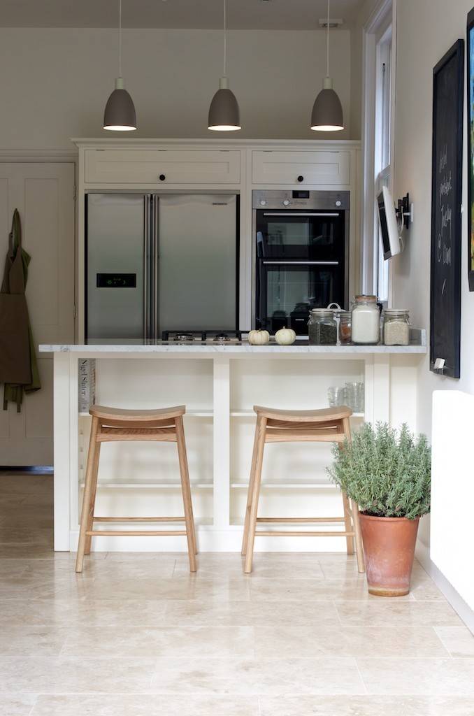 On the short side, meanwhile, there’s space for a couple of high-backed stools, forming a breakfast bar area.