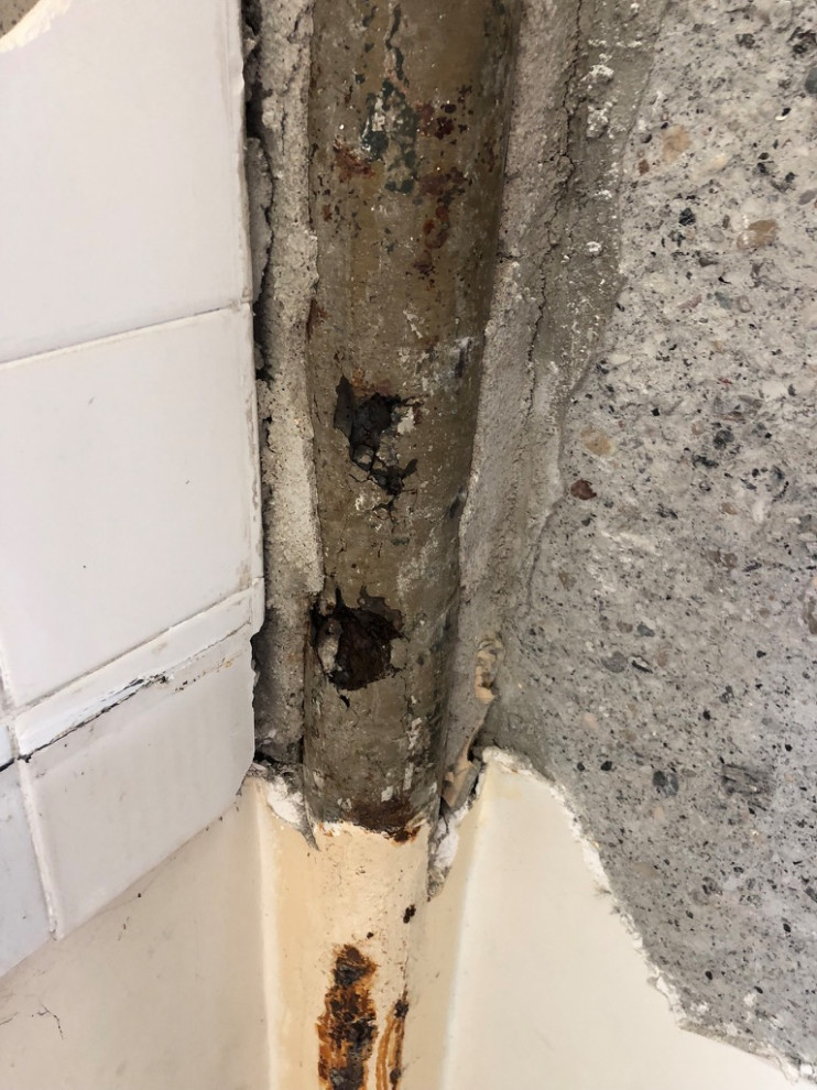 En cours de travaux. Cette rénovation, comme bien d’autres, a eu son lot de stress car, dès la démolition de la cuisine, un gros problème a été dévoilé. « Lorsque nous avons déshabillé la colonne d’évacuation, nous avons constaté qu’elle était entièrement rouillée au point que nous pouvions la traverser du doigt. Dès lors, les éviers des quatre étages supérieurs se déversaient dans cette cuisine », raconte Régis qui a dû faire intervenir la copropriété pour changer la colonne en urgence. « La rénovation a commencé avec ce désordre inquiétant, mais finalement mes clients ont été rassurés qu’il se soit révélé à ce moment », partage-t-il.