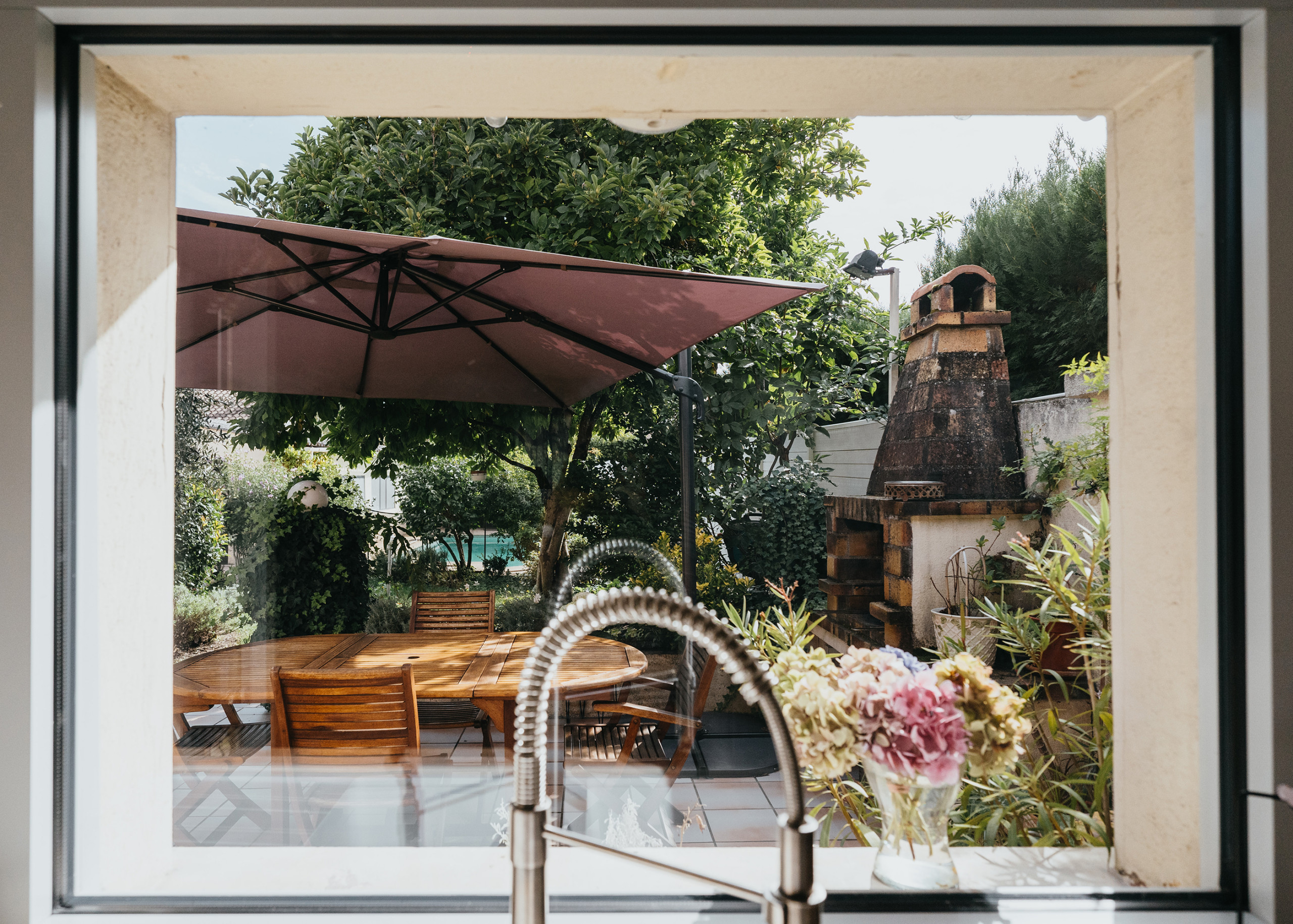 Après. Le premier fut le remplacement de la fenêtre ouvrant à la française par un châssis fixe sans petit bois, juste au-dessus de leur évier. « On peut faire la vaisselle en ayant une vue comme un tableau sur le magnifique jardin », explique Gaelle, qui s’est occupée de toutes les autorisations d’urbanisme nécessaires au changement de menuiserie auprès des services de la ville.