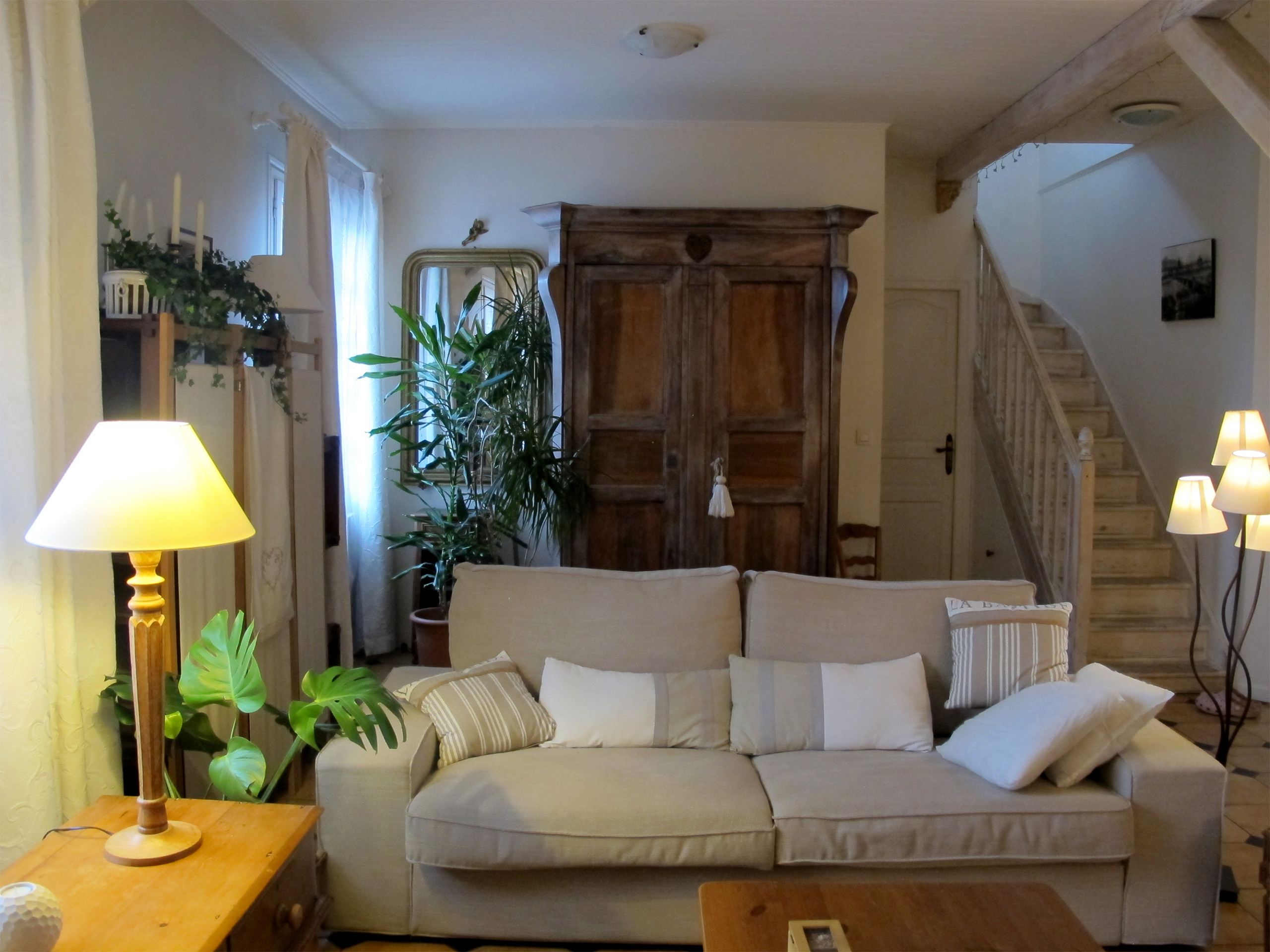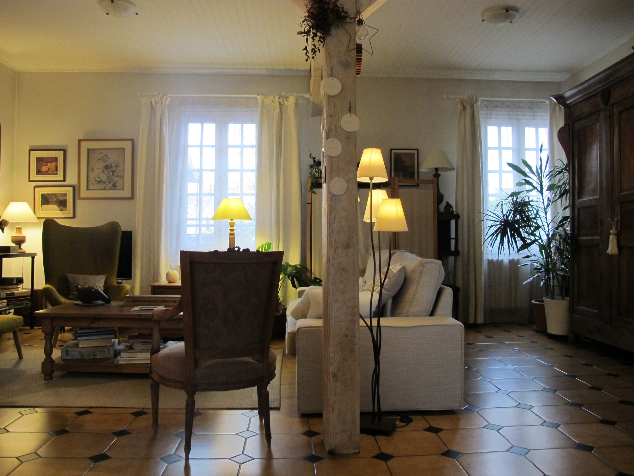 Avant. Voici le salon dans son état d’origine avec la porte des toilettes au fond. Lorsque l’architecte d’intérieur est entrée pour la première fois dans cette maison 1900, elle a tout de suite été séduite par le décor « shabby chic » et l’âme qui se dégageait des lieux. « La propriétaire avait un vrai univers, elle aimait les meubles qui ont une histoire et l’ambiance campagne, ça m’a tout de suite plu », se remémore-t-elle.