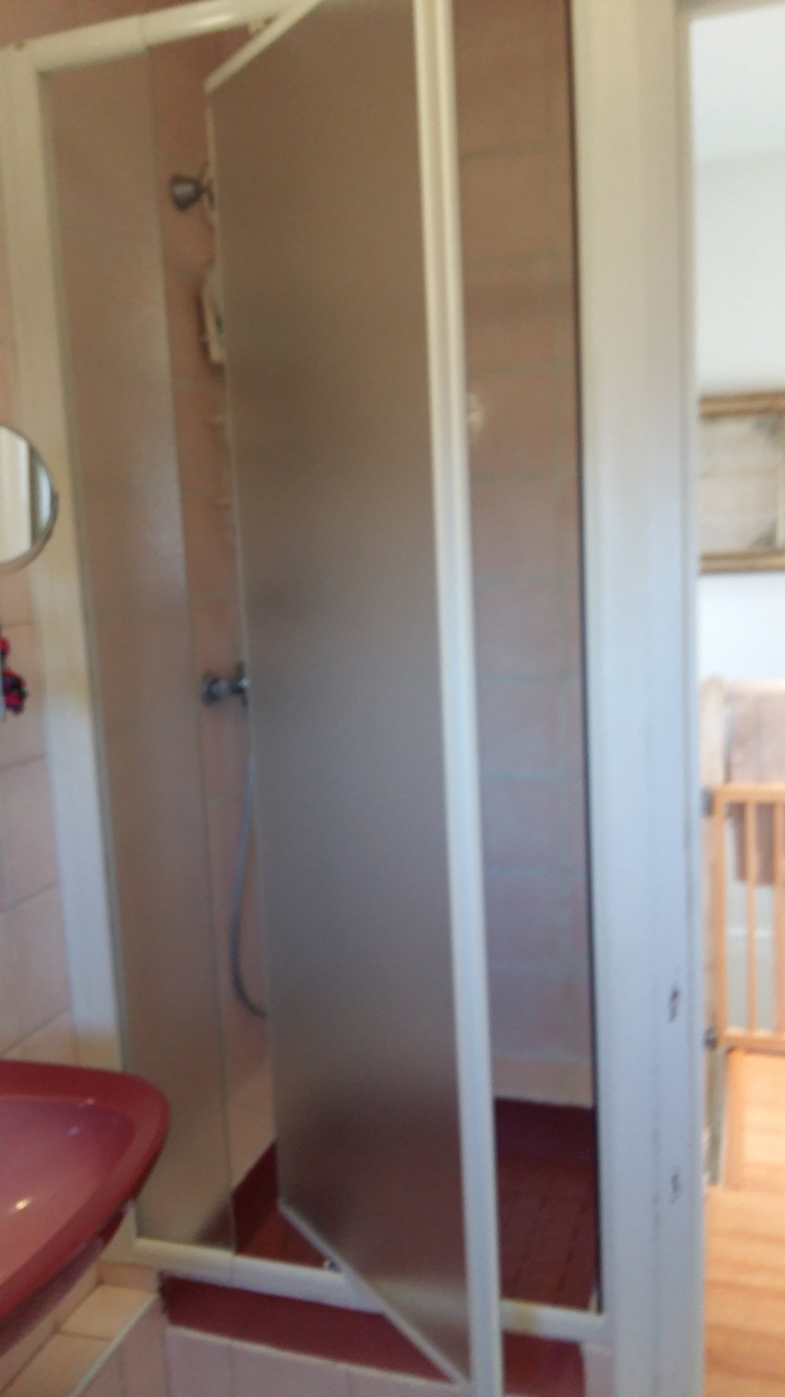 La salle de bains de madame n’était pas très pratique avec cette vieille douche des années 1970 et sa porte battante vers l’intérieur.