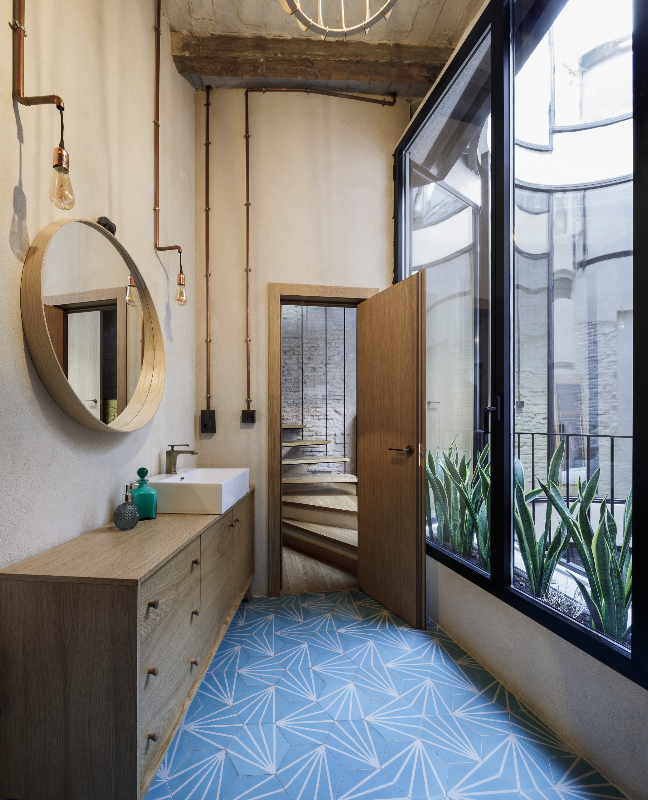 « La maison était complètement délabrée, exception faite de sa façade et du premier étage, tout en bois », se souvient Marta Gómez, fondatrice associée chez EovaStudio. « Si la rénovation a duré longtemps, c’est parce que nous avons procédé à une extension de l’étage pour profiter du toit et créer une terrasse, comme on le devine sur la photo précédente. »