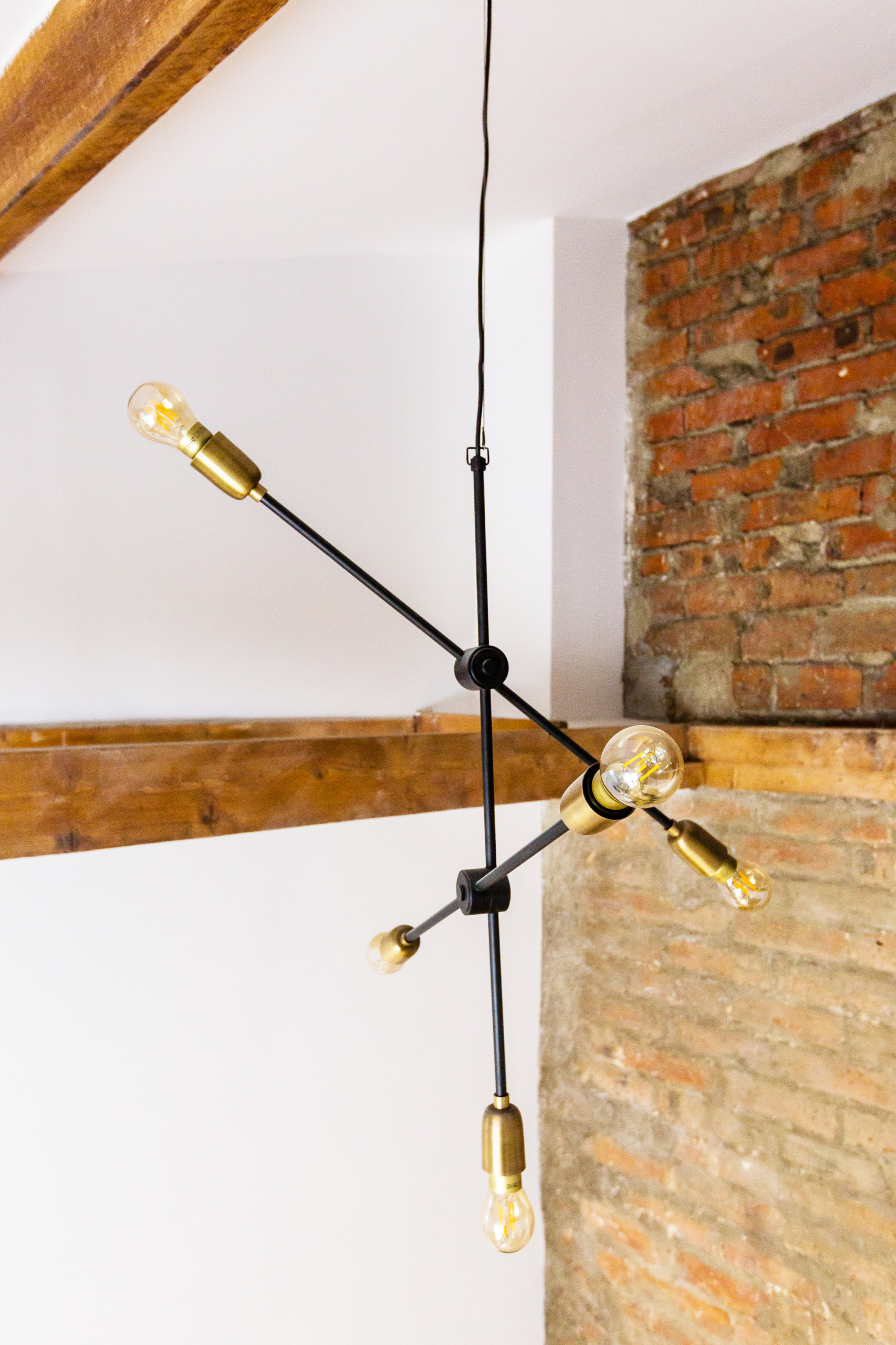 Pour meubler le plafond très haut, Margaux Carnevali a conseillé de placer une suspension design d’un mètre d’envergure. « Il fallait à la fois un bel objet, mais aussi quelque chose de discret. Selon qu’on la regarde sous un angle ou un autre, cette suspension métallique filaire s’impose plus ou moins. »