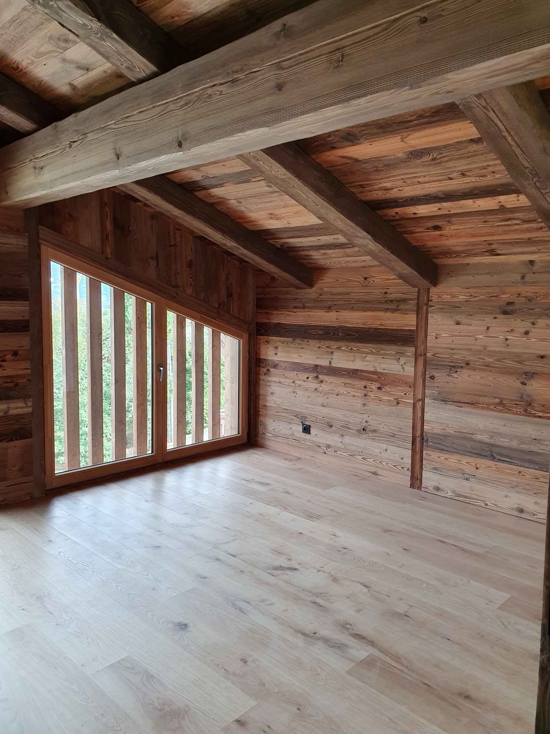 Ces sexagénaires rêvaient de longue date de s’offrir un chalet à la montagne pour y passer les vacances avec leurs enfants et petits enfants. À Combloux, en Savoie, un programme neuf de deux chalets, comprenant quatre logements chacun, les a décidés à franchir le pas. Ils ont retenu un duplex occupant les premier et deuxième et dernier étages de l’une des bâtisses, en particulier pour sa vue magnifique sur le Mont-Blanc. Ne vivant pas sur place, ils s’en remettent au promoteur pour les mettre en relation avec une professionnelle de l’aménagement afin de pouvoir y passer leurs premières vacances, comme s’ils avaient réservé un hôtel de luxe.