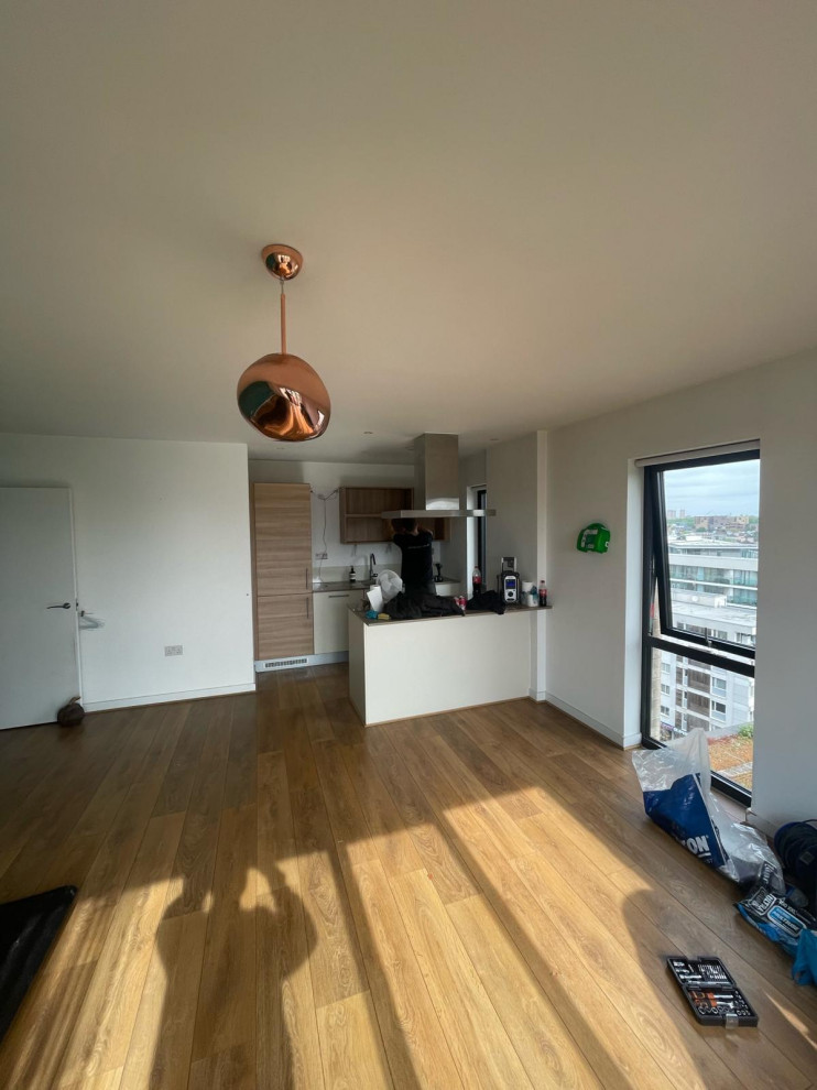Après. Cette image est prise depuis la nouvelle porte, plus petite pour gagner de la place dans la pièce.