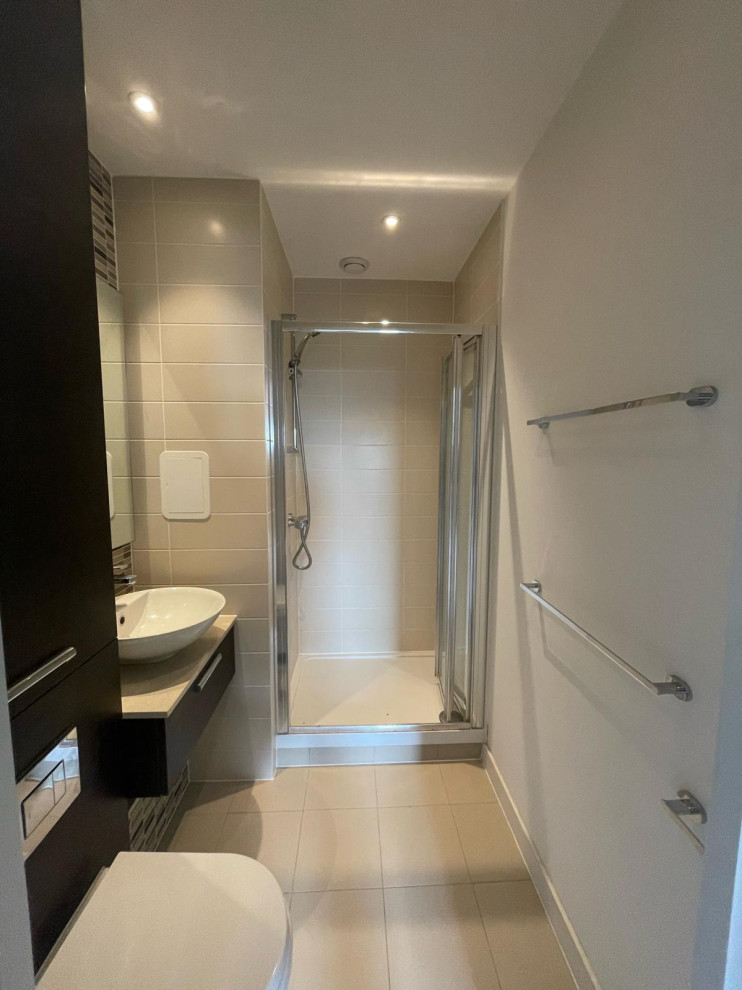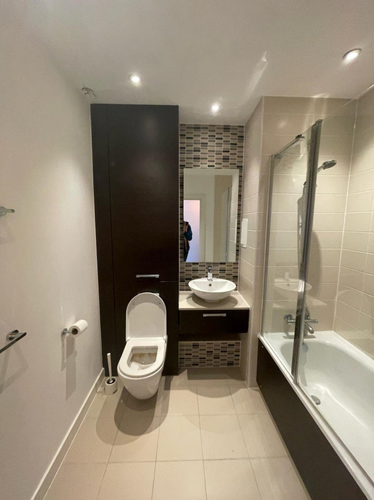 Les carreaux posés verticalement font écho aux carreaux roses de l’autre salle de bains. « Cette méthode de superposition linéaire donne l’illusion d’un espace plus grand, ce qui est bien dans une petite pièce », explique-t-il.