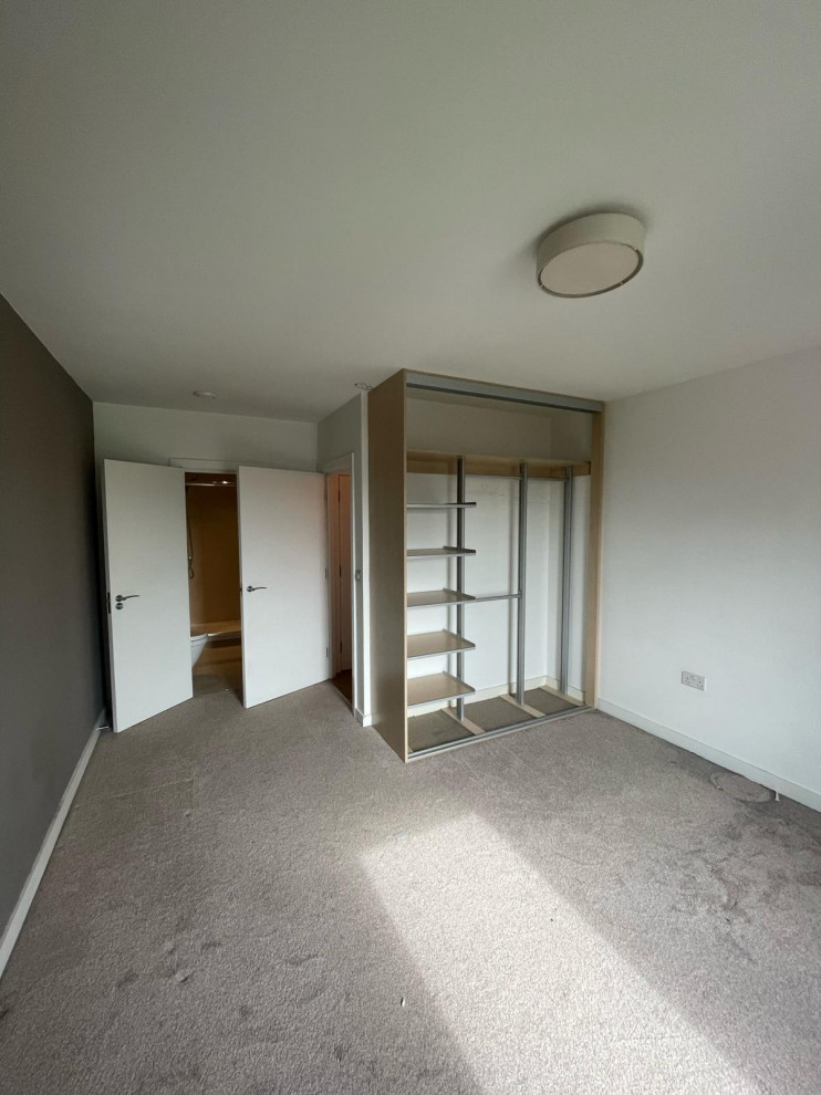 Après. « Nous avons créé une passerelle vers la salle de bains, de sorte que lorsque vous entrez dans la chambre, vous ne voyez pas la salle de bains », explique Omar. La porte de droite est la nouvelle sortie vers le couloir.