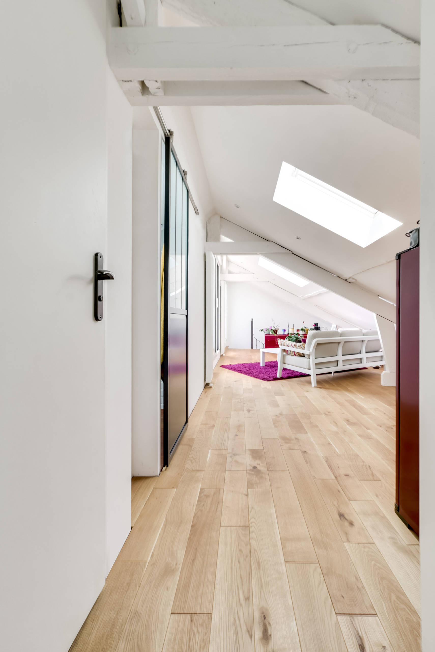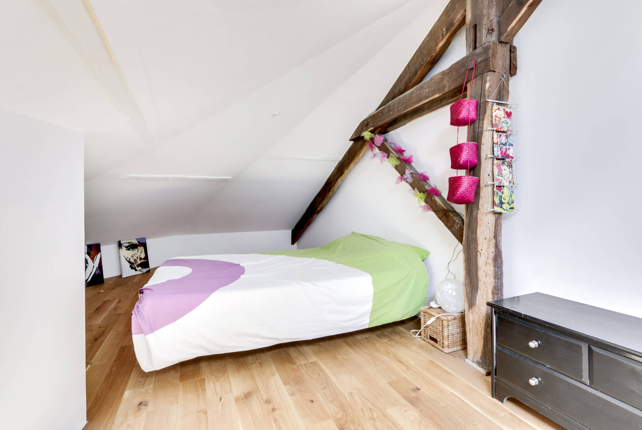 Les architectes des Bâtiments de France se sont opposés à l’ouverture d’une fenêtre dans l’angle de l’immeuble. La présence d’une fenêtre de toit sur un autre pan de mur apporte toutefois assez de lumière dans la pièce.