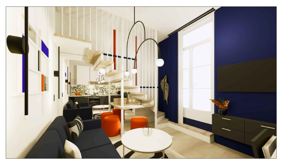 En plein cœur du marais parisien, l’optimisation tout en contrastes d'une studette destinée à la location hôtelière