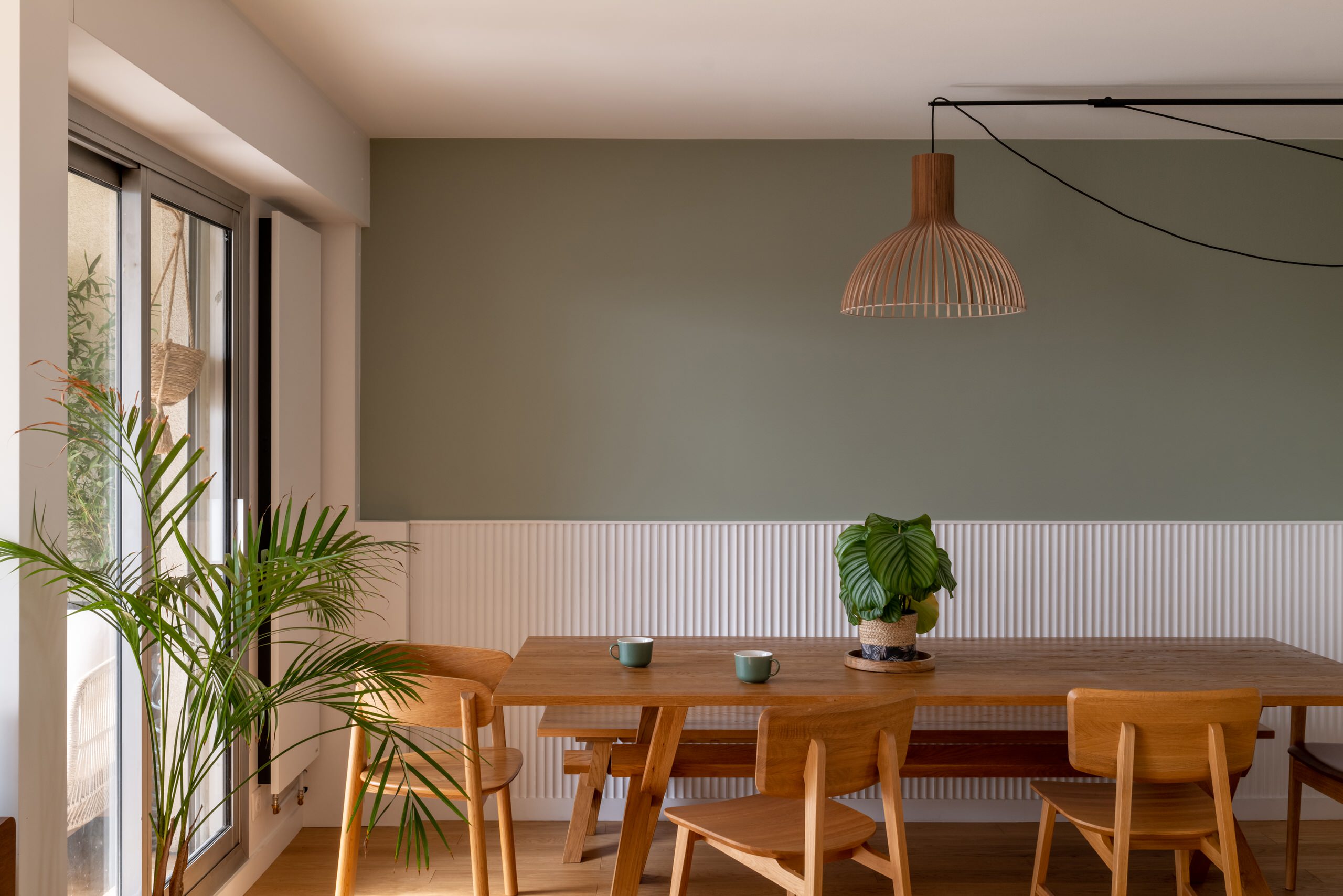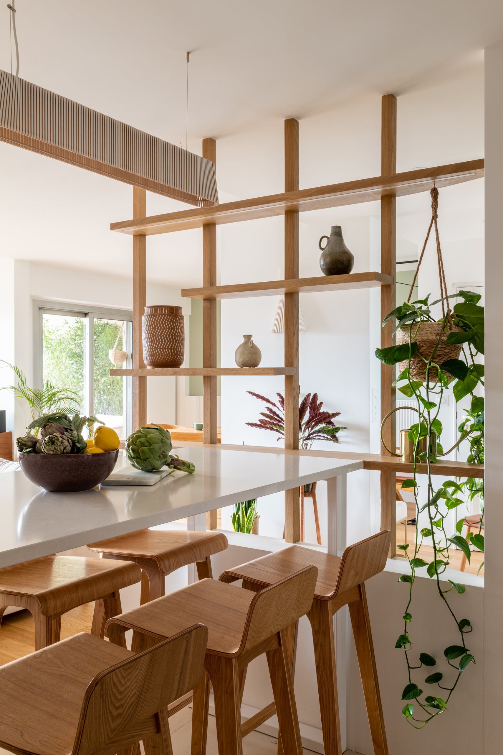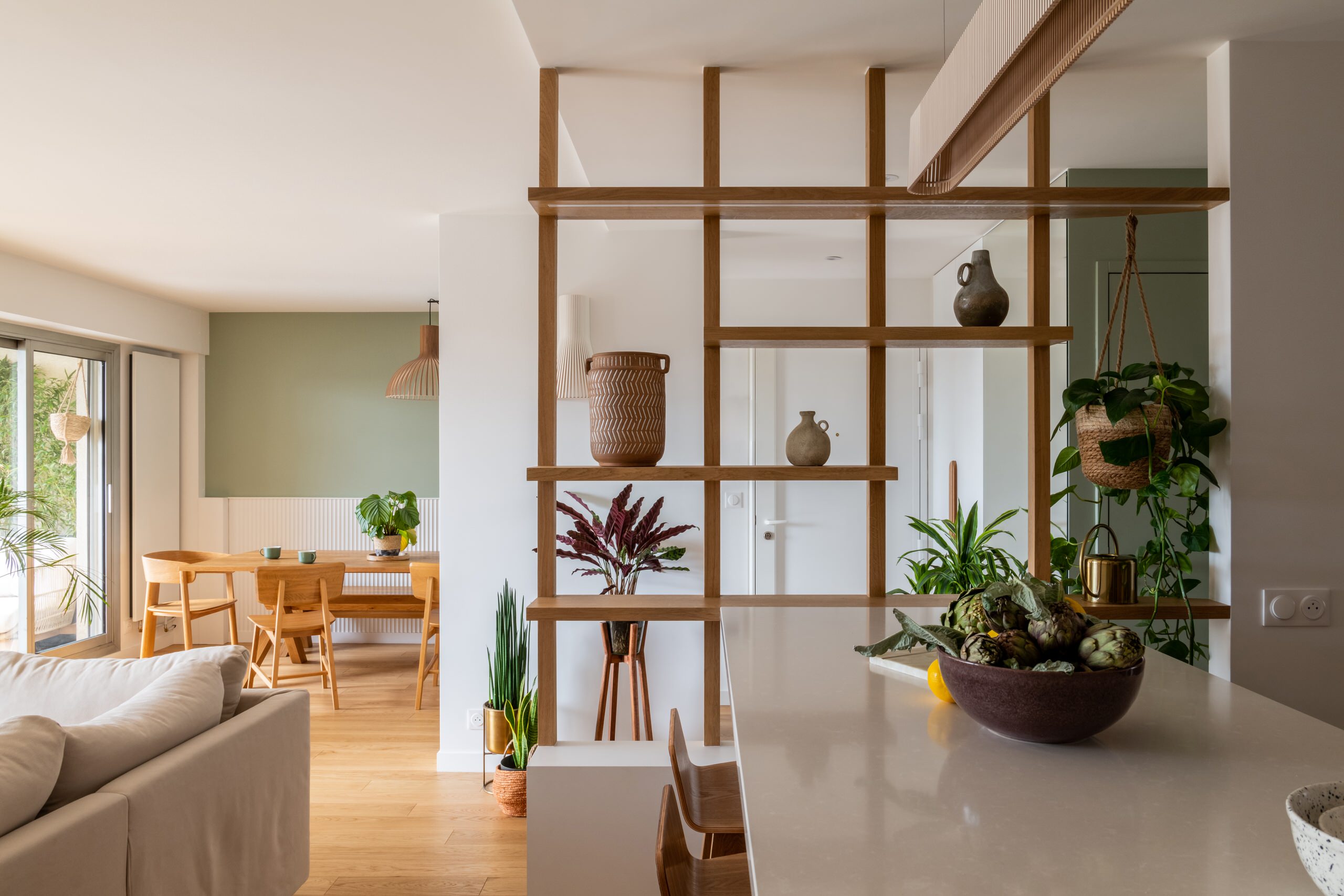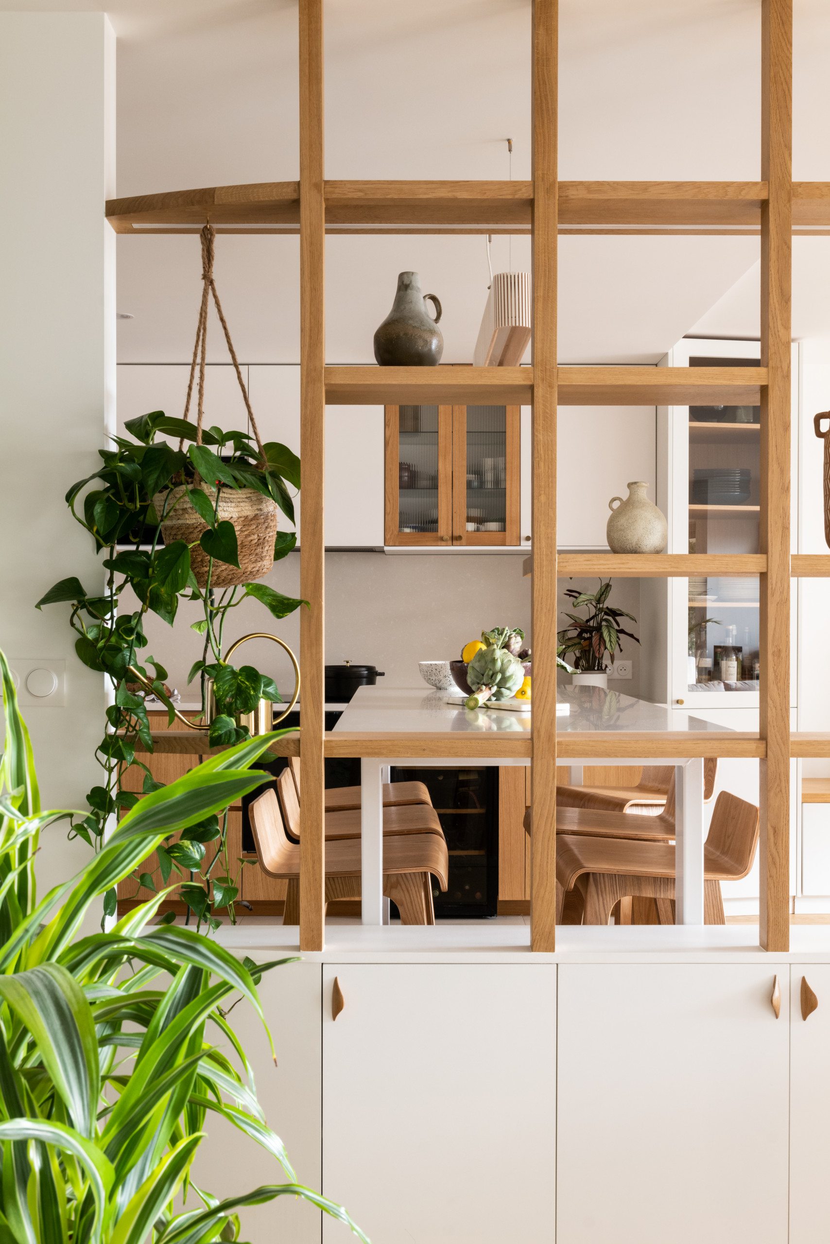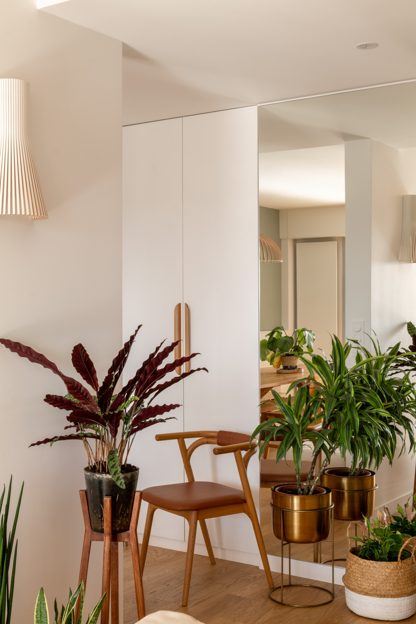 Après. En parallèle du réagencement des deux appartements dans le cadre de leur fusion, une attention particulière a été accordée à la décoration. « Cette famille recherchait une atmosphère naturelle et apaisante. Les parents sont passionnés par les plantes, ils avaient de nombreux beaux spécimens dans leur précédent appartement », souligne Stéphanie.