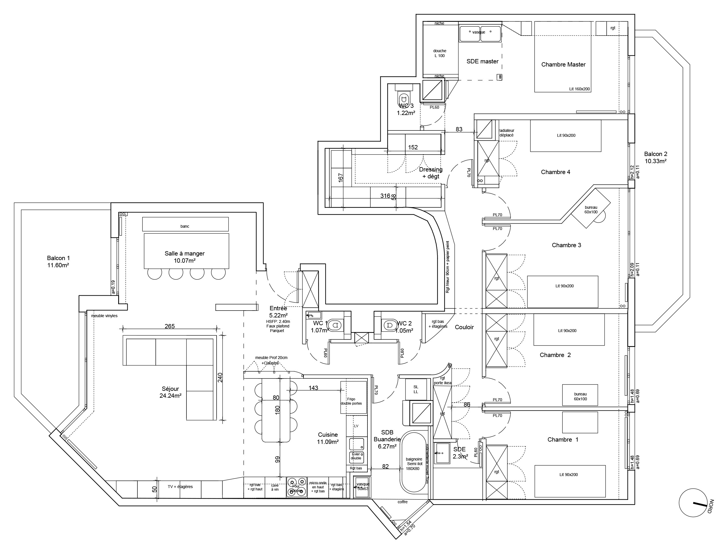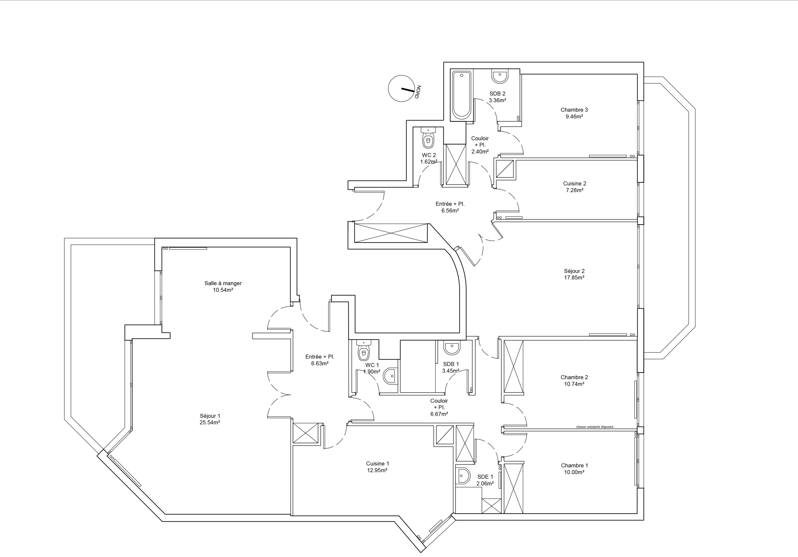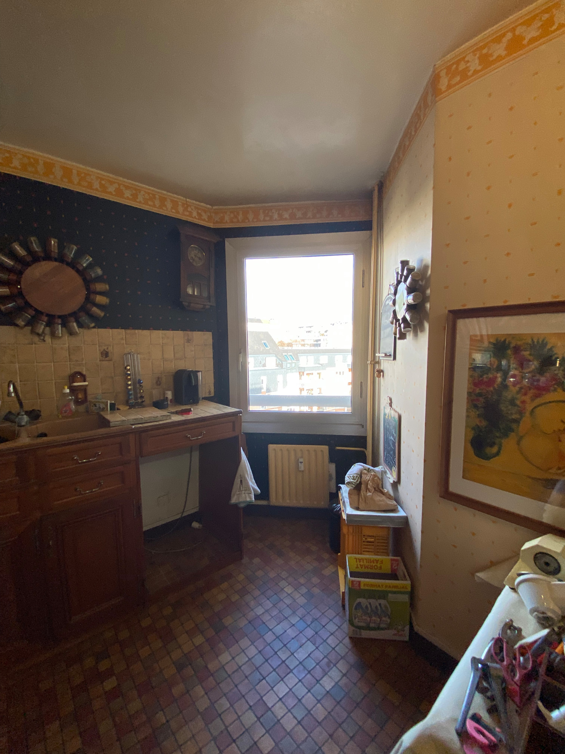 Après. L’architecte Stéphanie Bertina Minel, appelée au moment de la promesse de vente par les maîtres d’ouvrage, se souvient « de surfaces lumineuses et d’une belle situation, des balcons avec une vue sur la Seine et la tour Eiffel, d’une double exposition sud/nord très intéressante et, effectivement, de la possibilité de créer une grande pièce de vie ouverte et cinq chambres comme le souhaitait ce couple ».