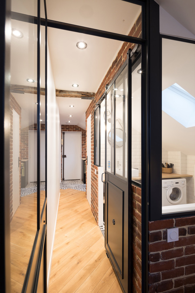 Grâce à l’installation d’une nouvelle fenêtre de toit et de la verrière, la salle de bains profite d’une agréable lumière naturelle.