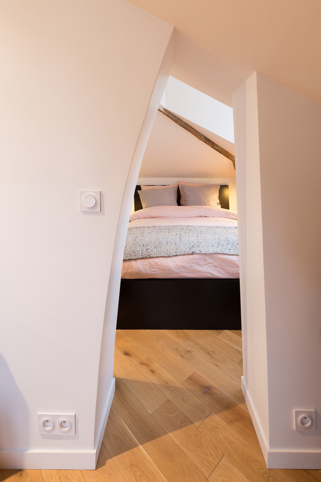 Le résultat de cette rénovation est subjuguant ! L’architecte d’intérieur nous prouve ici qu’en associant les fonctions, en jouant avec les pentes, et en optant pour la sobriété et l’harmonie des matériaux, on peut parvenir à optimiser de manière spectaculaire des petits espaces !