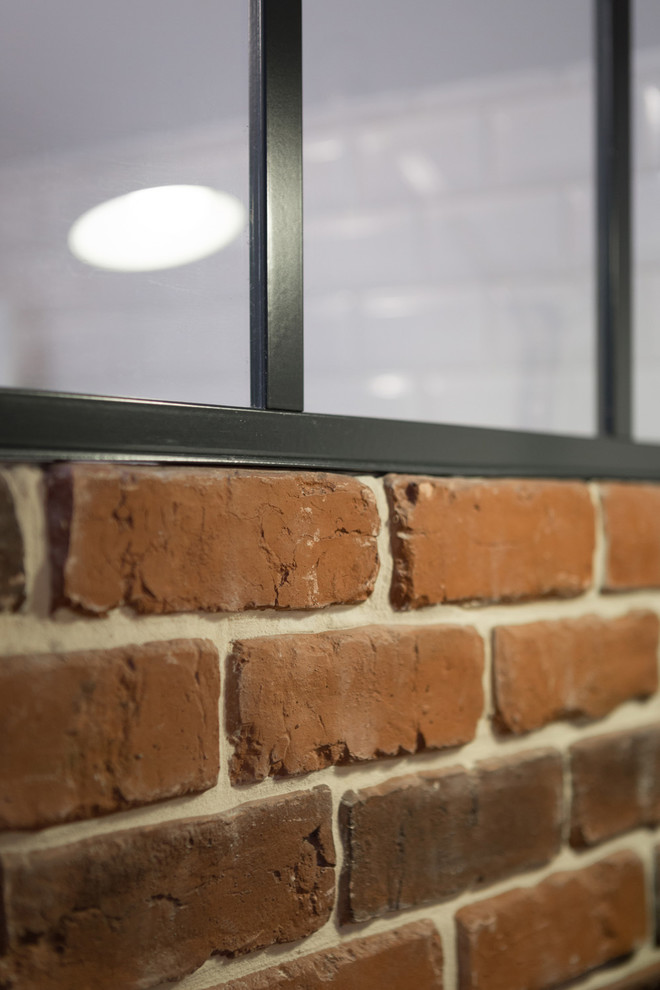 Pour la décoration, Prisca a travaillé en collaboration avec la propriétaire. « Nous souhaitions un esprit loft et un espace épuré sans trop de couleurs », explique-t-elle. « Aussi, la brique permettait d’apporter de la matière et un esprit industriel chic. »