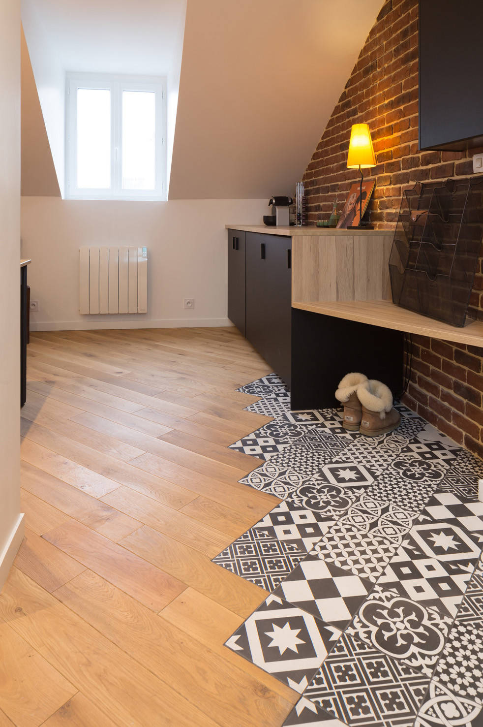 Carrelage : Gatsby, Leroy Merlin ; Parquet : Leroy Merlin