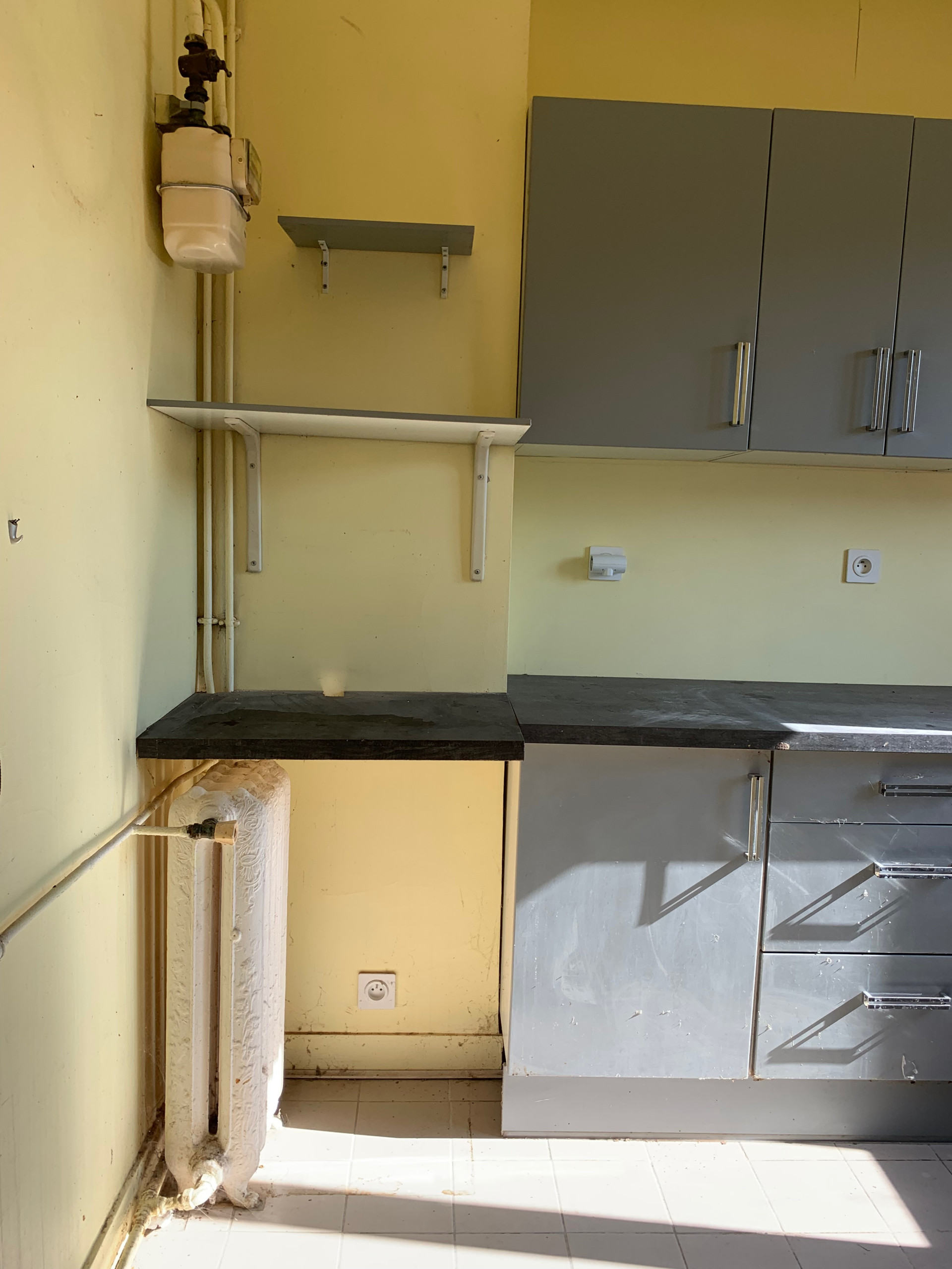 Avant. La cuisine était une petite pièce sur cour de 6 m² aménagée à l’ancienne.
