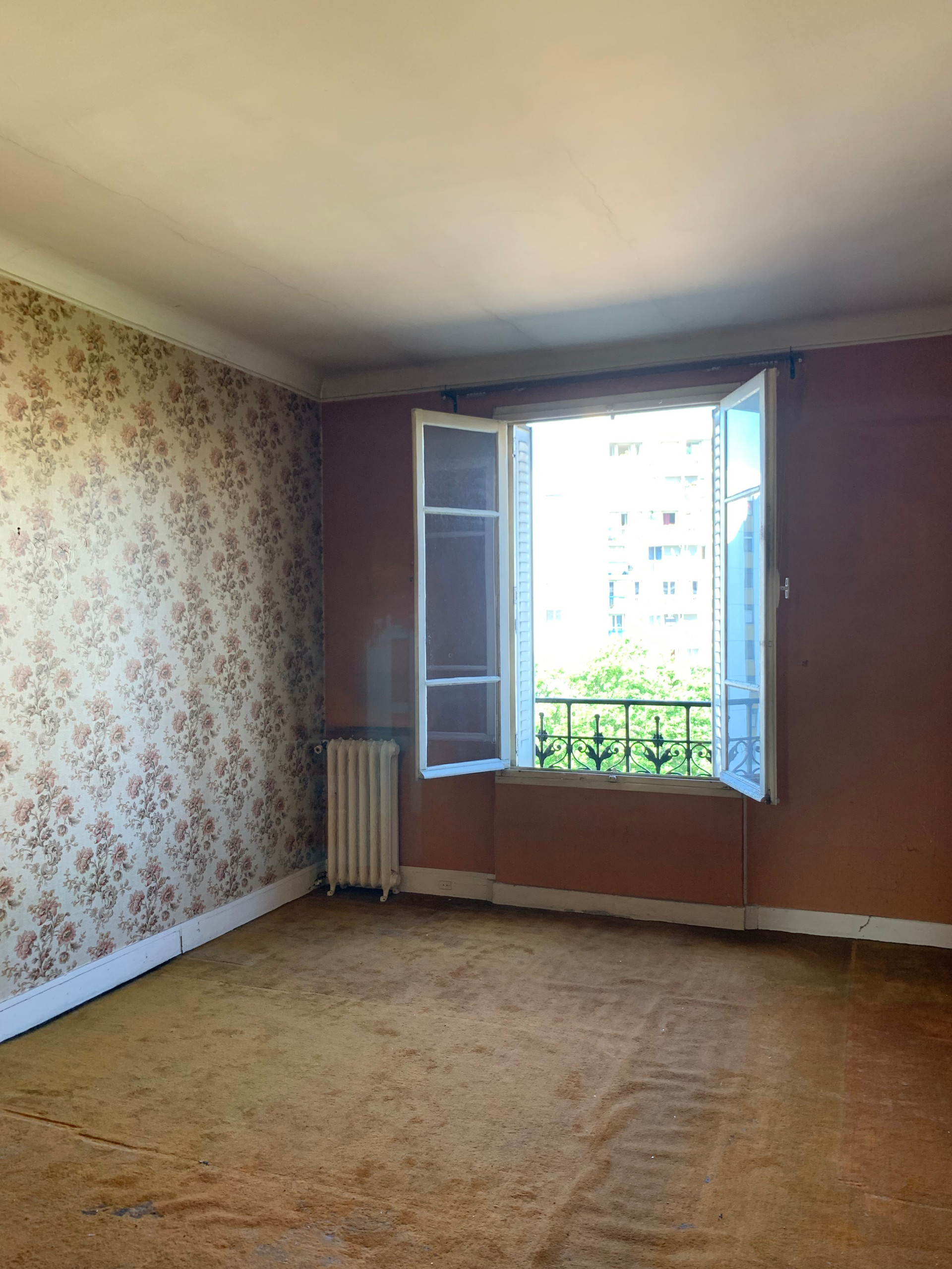 Avant. L’appartement souffrait d’un agencement cloisonné à l’ancienne. Le séjour (12 m²) était daté mais présentait du potentiel avec sa grande fenêtre.