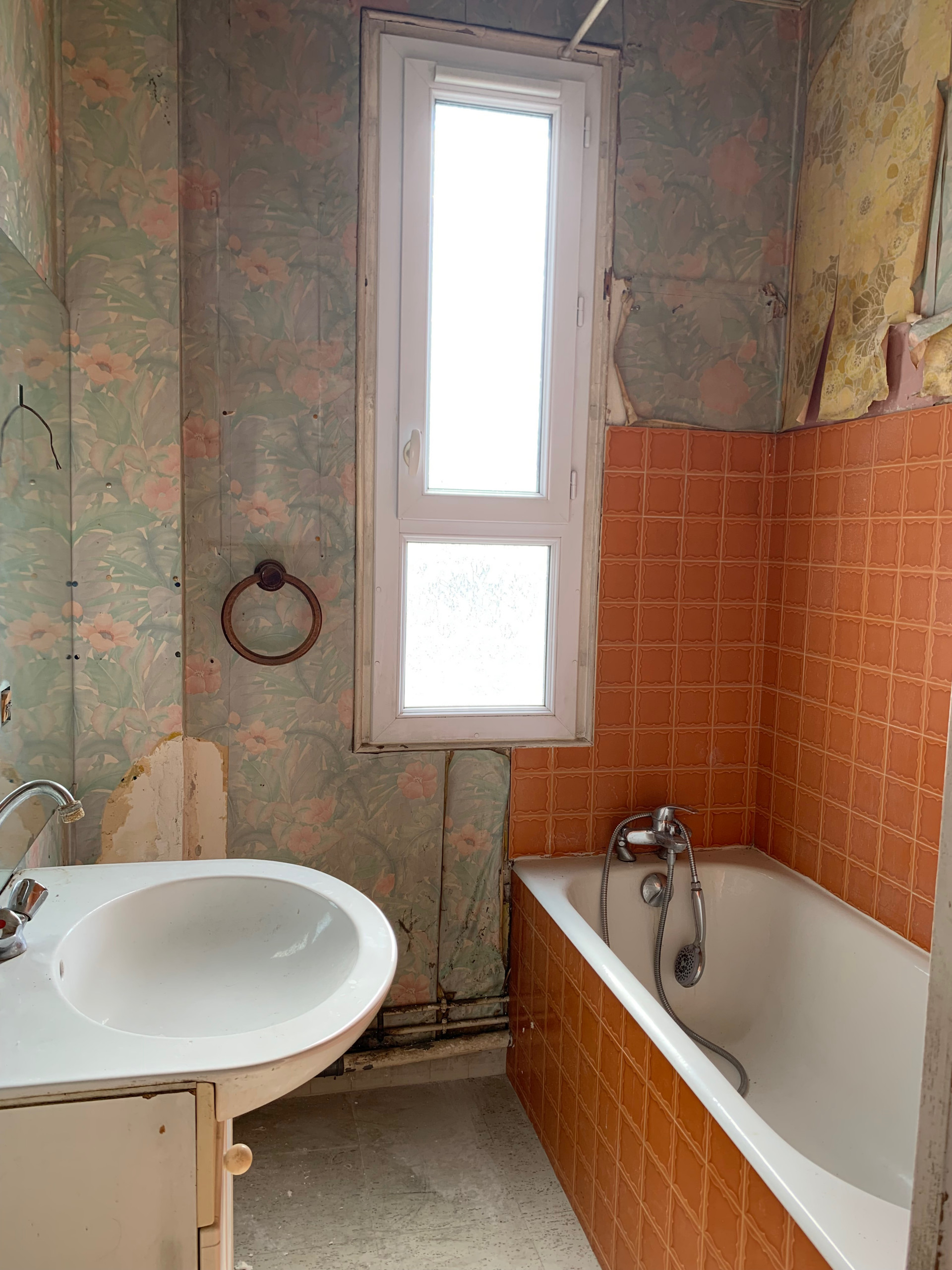 Avant. Sis en étage élevé de cet immeuble ancien, l’appartement offre deux pièces égales sur rue – salon et chambre – où afflue la lumière. Les pièces d’eau –toilettes, salle de bains et cuisine –, cloisonnées, se situent sur la cour. Resté figé dans sa dernière rénovation remontant aux années 1970, le deux-pièces, défraîchi, nécessite une remise à niveau thermique et un réagencement complet.