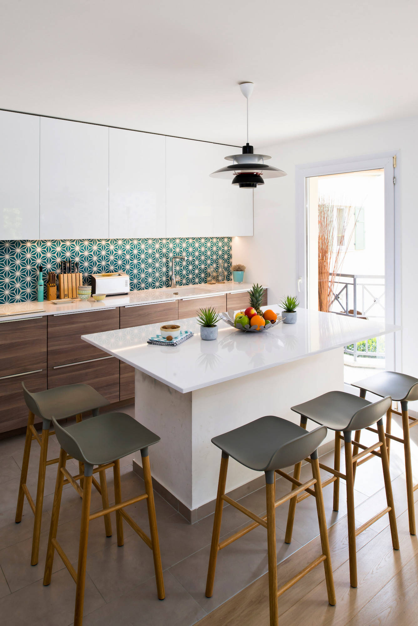 Sol : grès cérame 30 x 60 chez Leroy Merlin ; Tabourets : Normann Copenhagen