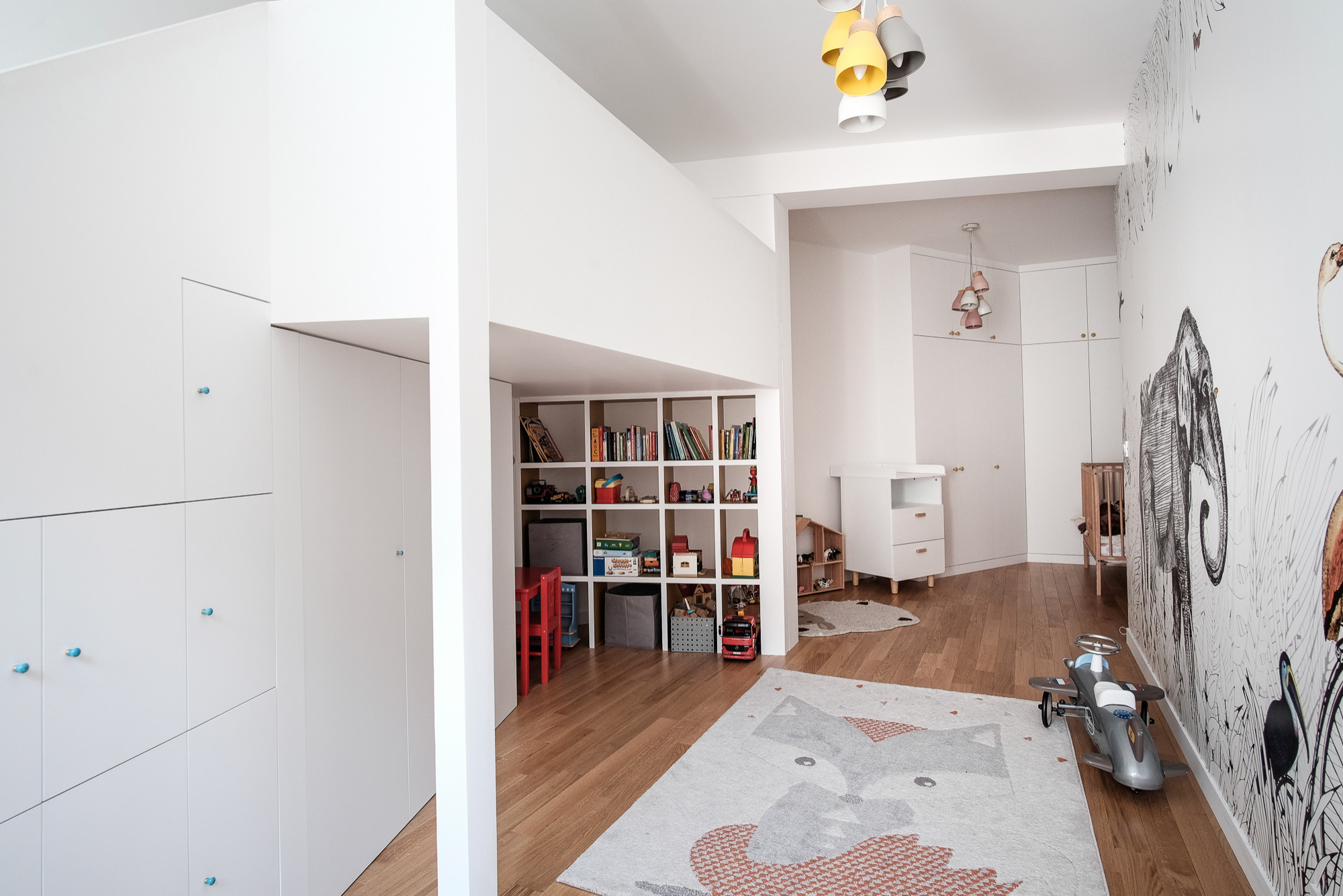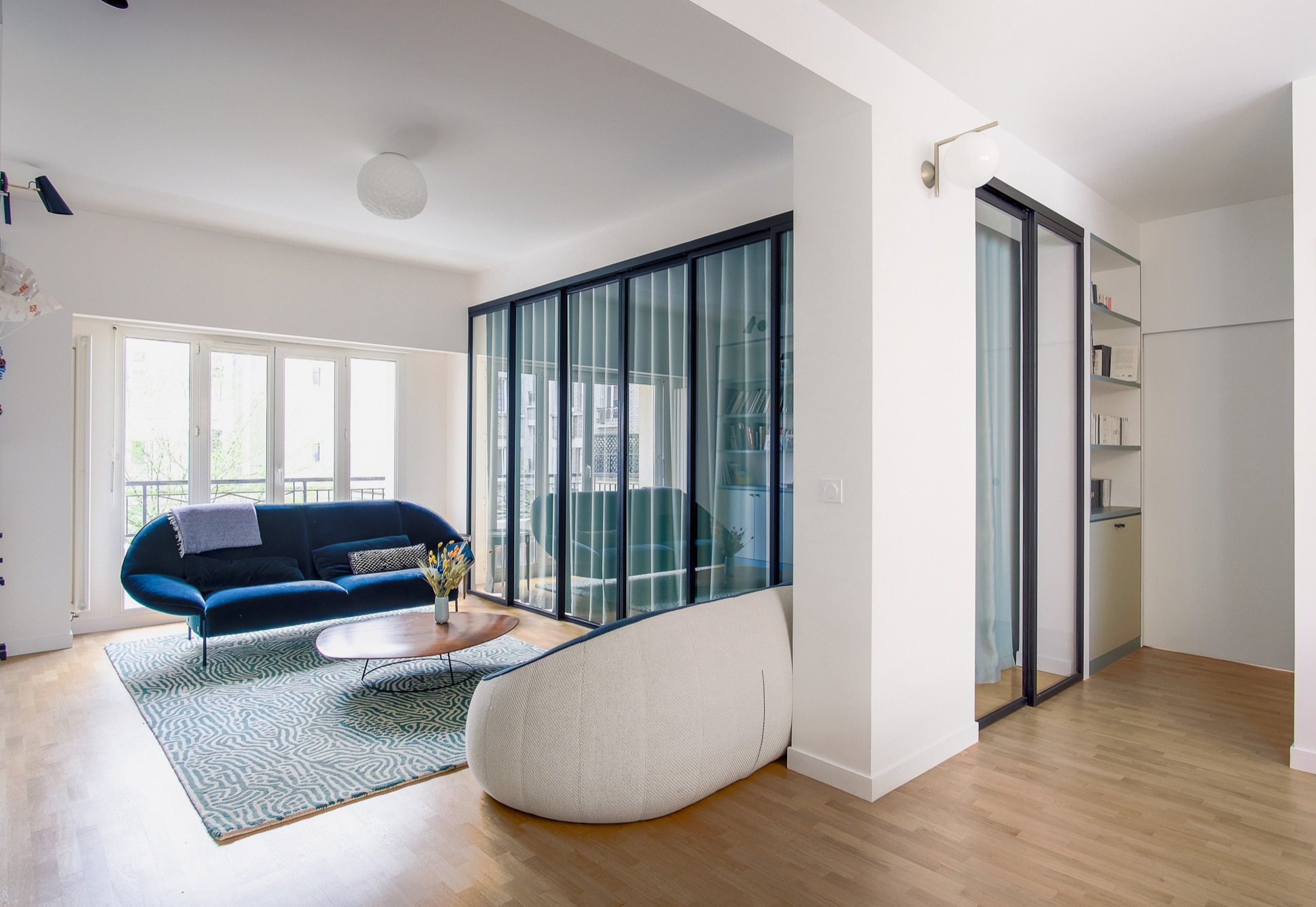 Cet appartement de 110 m² perché au troisième étage d’un immeuble des années 90 a été transformé en un havre de paix zen et apaisant pour le plus grand bonheur de ses occupants. Auparavant en location, les propriétaires des lieux ont décidé d’acquérir un appartement plus spacieux pour l’arrivée de leur deuxième enfant. L’objectif de ce projet de rénovation était de faire entrer un maximum de lumière en décloisonnant la pièce à vivre, d’optimiser les espaces de rangement et de créer une grande chambre pour accueillir les deux enfants de ce couple de trentenaires.