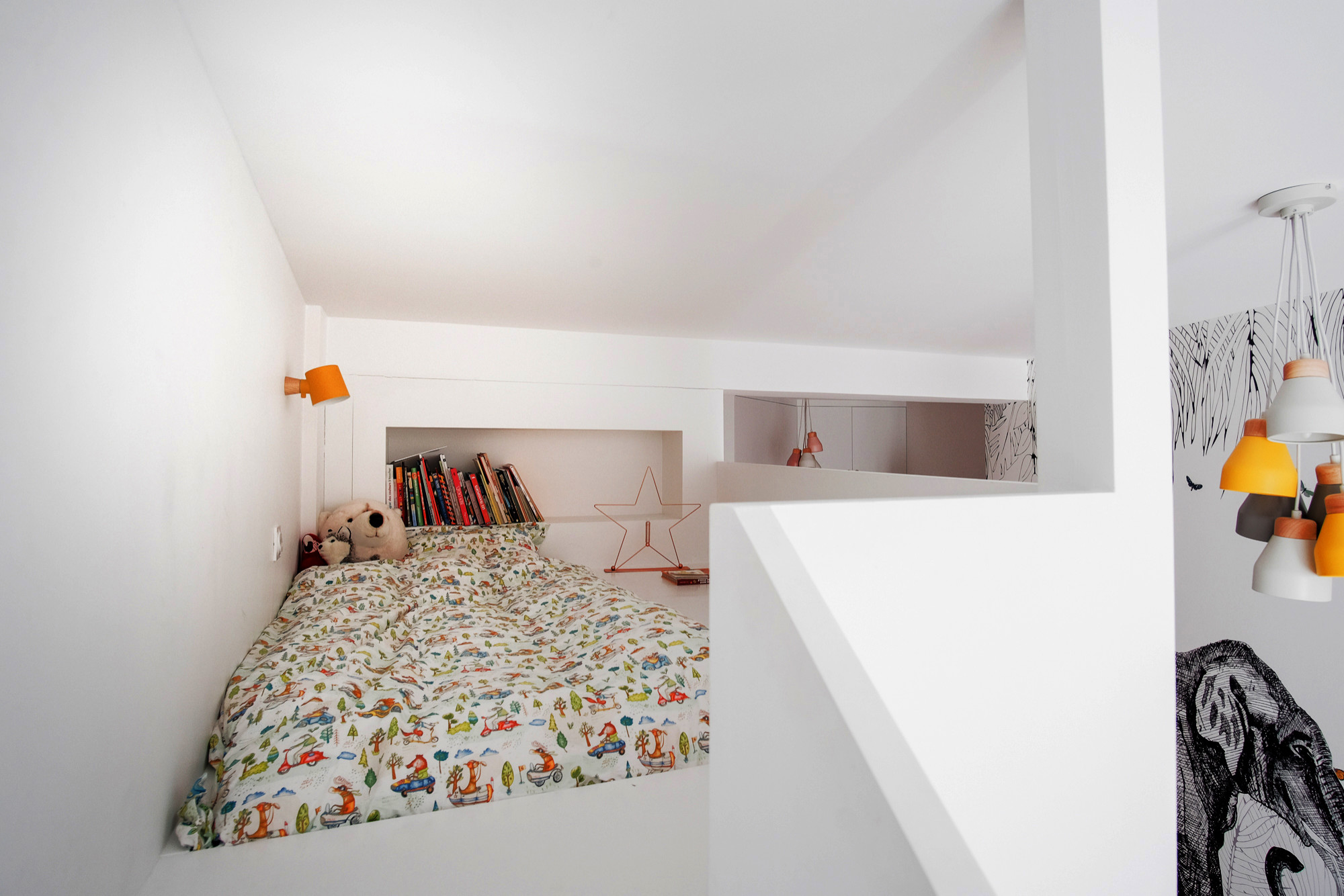 Avant. Dans cette chambre, les cloisons et l’espace de rangement existant ont été supprimés pour créer une vaste chambre dédiée aux enfants.