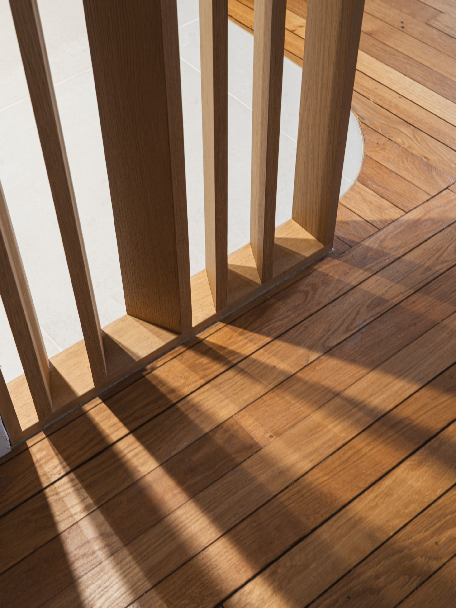 Les ouvertures nouvelles permettent une sensation d’espace et de liberté et une circulation sans entrave, avec une continuité visuelle de formes et de teintes.