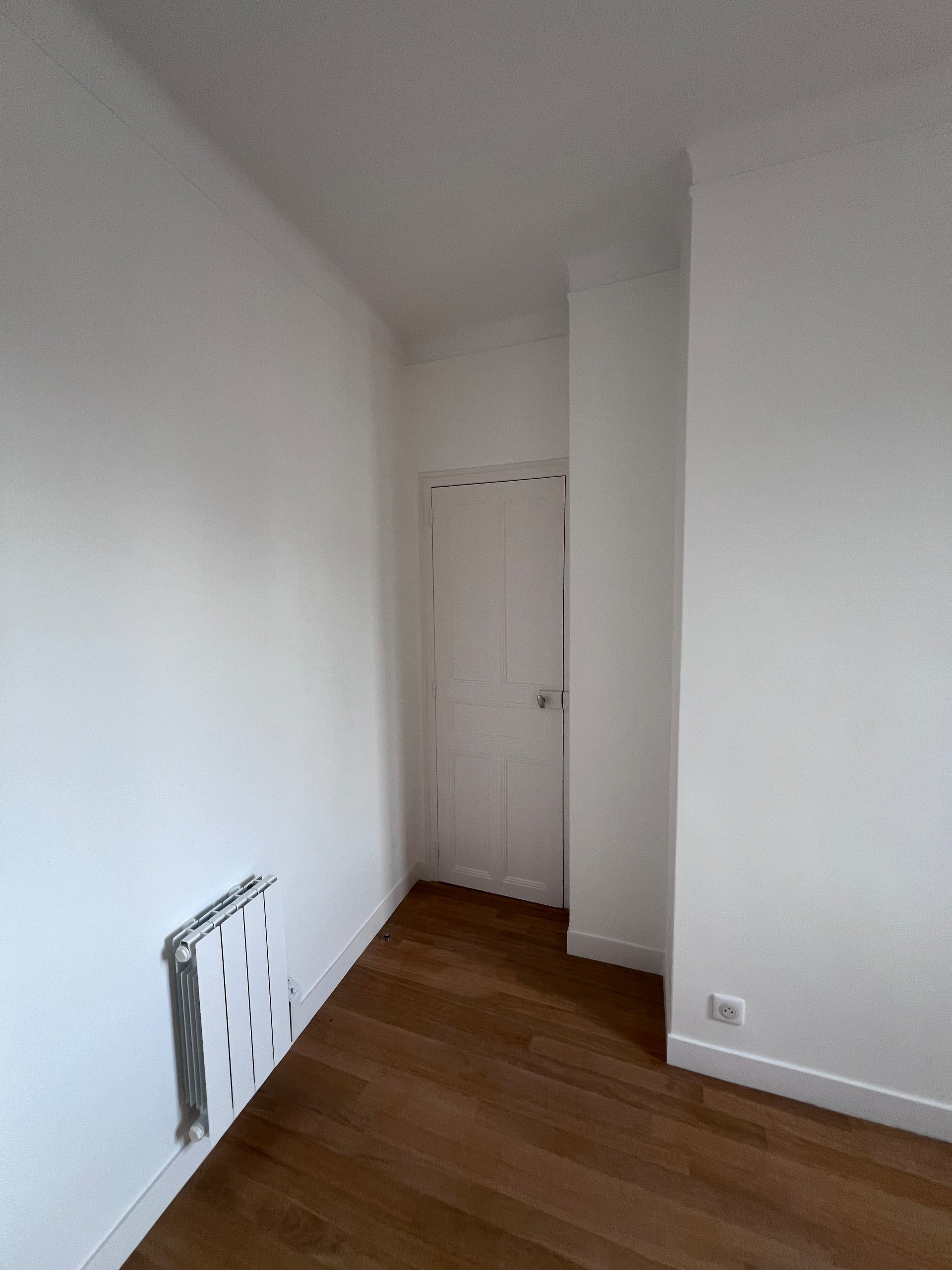 Dernier détail que nous explorerons : cette petite étagère en bois a été placée sur un radiateur, comme un discret point d’aménagement supplémentaire. « En soi, il est plutôt joli, mais c’est toujours un peu massif. On ajoute donc une petite tablette, qui permet aussi d’éviter de salir le mur ». Quel a été le bilan de cette expérience pour les professionnels ? « C’est un beau projet, design », commente Maximilien. Ce type de chantier consistant à donner du cachet, du style, est assez satisfaisant », conclut Thomas. « Mon espace préféré est la cuisine, on a fait d’un petit coin sans intérêt un élément très marquant qui donne le ton dans tout l’appartement ».