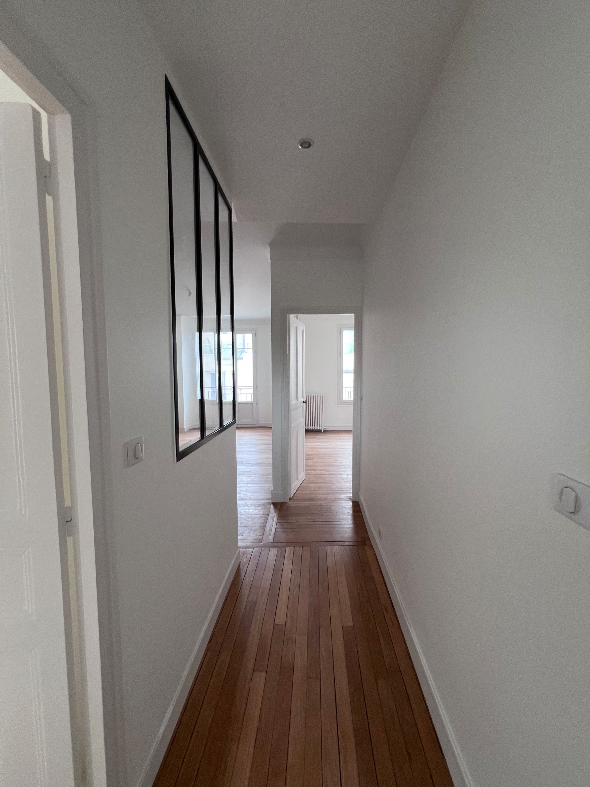 Maximilien Caglayan, qui a effectué les travaux planifiés par Thomas avec sa société Rénovamax, explique : « Nous avons fait un travail particulier en n’utilisant pas la même finition de peinture : mat pour le plafond, velours pour le mur, selon des tracés qu’on a bien délimités ».