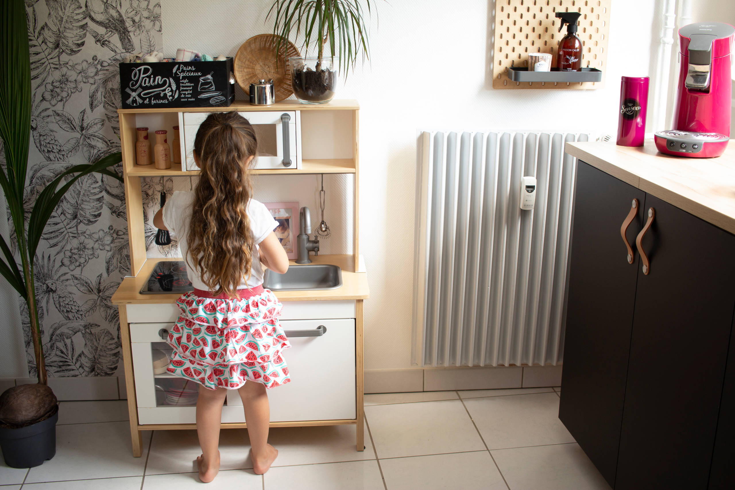 « Je l’ai achetée d’occasion sur Le Bon Coin. C’est une cuisine Ikea, la seule qui grandisse avec l’enfant car elle est fournie avec des éléments pour surélever les pieds », note Estelle.