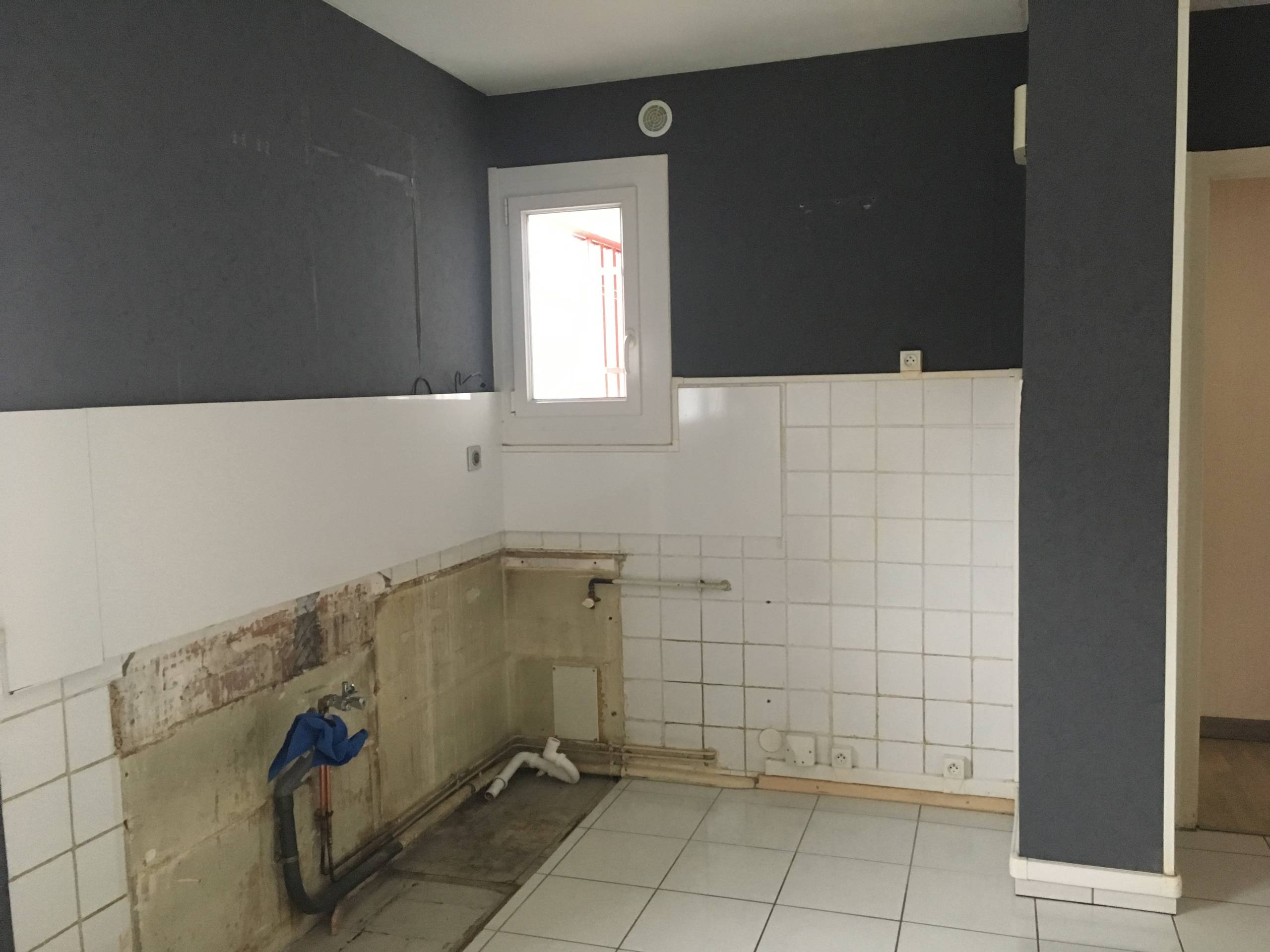 Avant. Dans l’appartement qu’Estelle loue pour s’installer avec sa fille, la cuisine n’était pas aménagée. Le propriétaire a proposé de la repeindre en blanc, de poser une nouvelle crédence en carreaux 20 x 20 cm ainsi que des éléments basiques. Estelle a préféré négocier avec lui pour installer ses propres éléments.