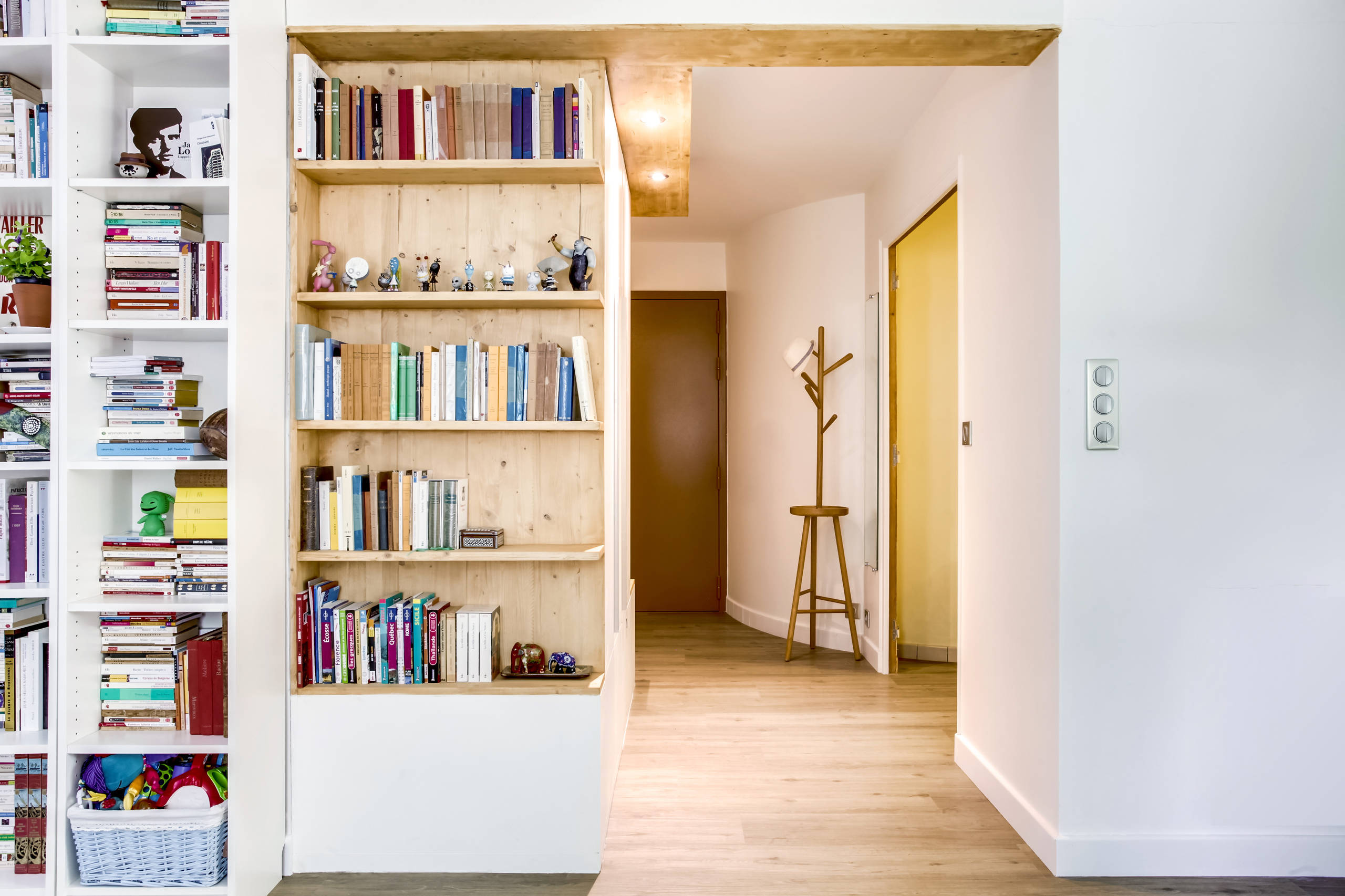 La création d’une niche dans la nouvelle montée d’escalier a permis d’animer cet endroit confiné et de créer du volume.