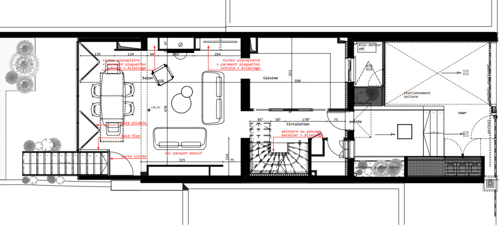 Après. Pour réaménager le rez-de-jardin ainsi que les étages, Émilie a repris le plan d’origine validé par les propriétaires, celui de l’architecte de départ : « Le pire c’est que ses intentions étaient bonnes et le projet bien dessiné… Comme cette architecte exerçait toujours, je l’ai contactée pour qu’elle me fasse savoir si rien ne s’opposait à ma reprise sur ce dossier eu égard à la propriété intellectuelle des plans mais je n’ai eu aucun retour de sa part… », raconte Émilie.