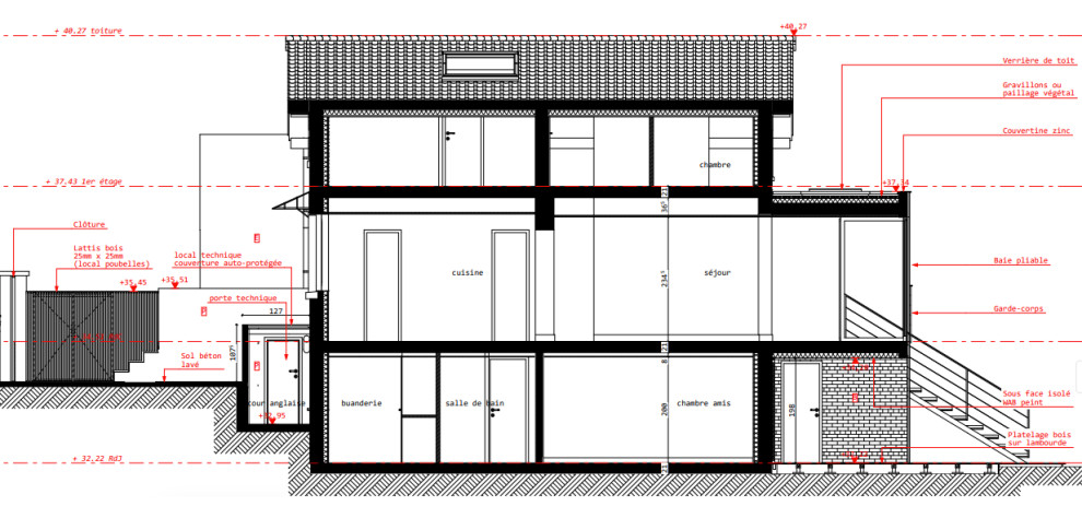 Plan de la maison en coupe