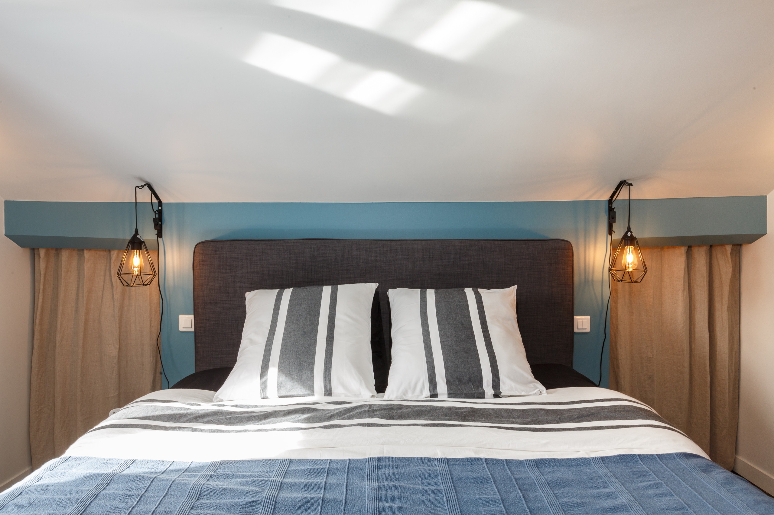 La chambre parentale sous rampants était relativement en bon état. Elle a été uniquement repeinte.
