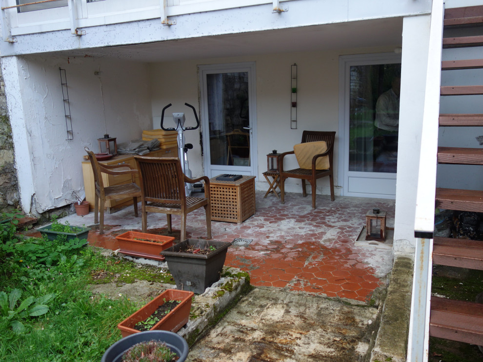 Avant. « À l’arrière de la maison, sur la terrasse de tomettes d’origine, une terrasse bois avait été installée lors de la phase de rénovation. Mais les propriétaires ont fini par découvrir que la terrasse avait été posée sur des plots de… plâtre et non de PVC ou de béton comme on doit le faire normalement. Le plâtre s’est bien entendu désagrégé au fil des pluies et il est venu boucher les caniveaux. Un jour d’orage, tout le rez-de-chaussée a été inondé. Les murs intérieurs avaient déjà commencé à cloquer depuis quelque temps et ce dégât des eaux a accéléré le pourrissement des murs. Les bouches de ventilation avaient été omises dans le rez-de-jardin. Ce dernier est devenu insalubre », raconte Émilie.