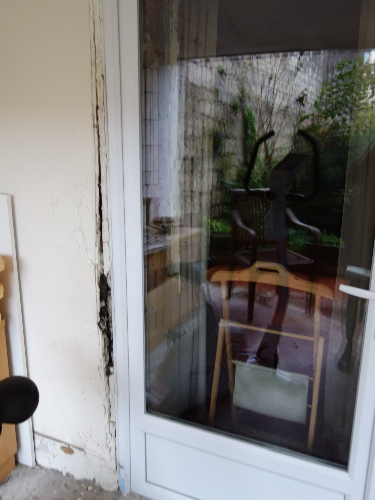 « Au rez-de-jardin, le mur qui fermait l’extension en donnant sur l’extérieur avait été également construit en BA13 classique comme une cloison intérieure ! Les portes-fenêtres étaient prises dans ce mur. Au fil des intempéries, le plâtre s’est gorgé d’eau, les fenêtres se sont descellées et il n’était plus possible de les ouvrir », explique la pro.