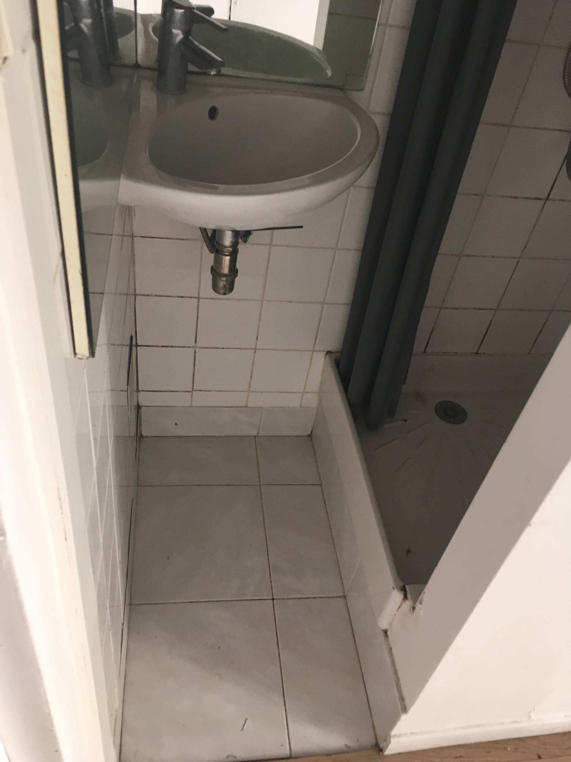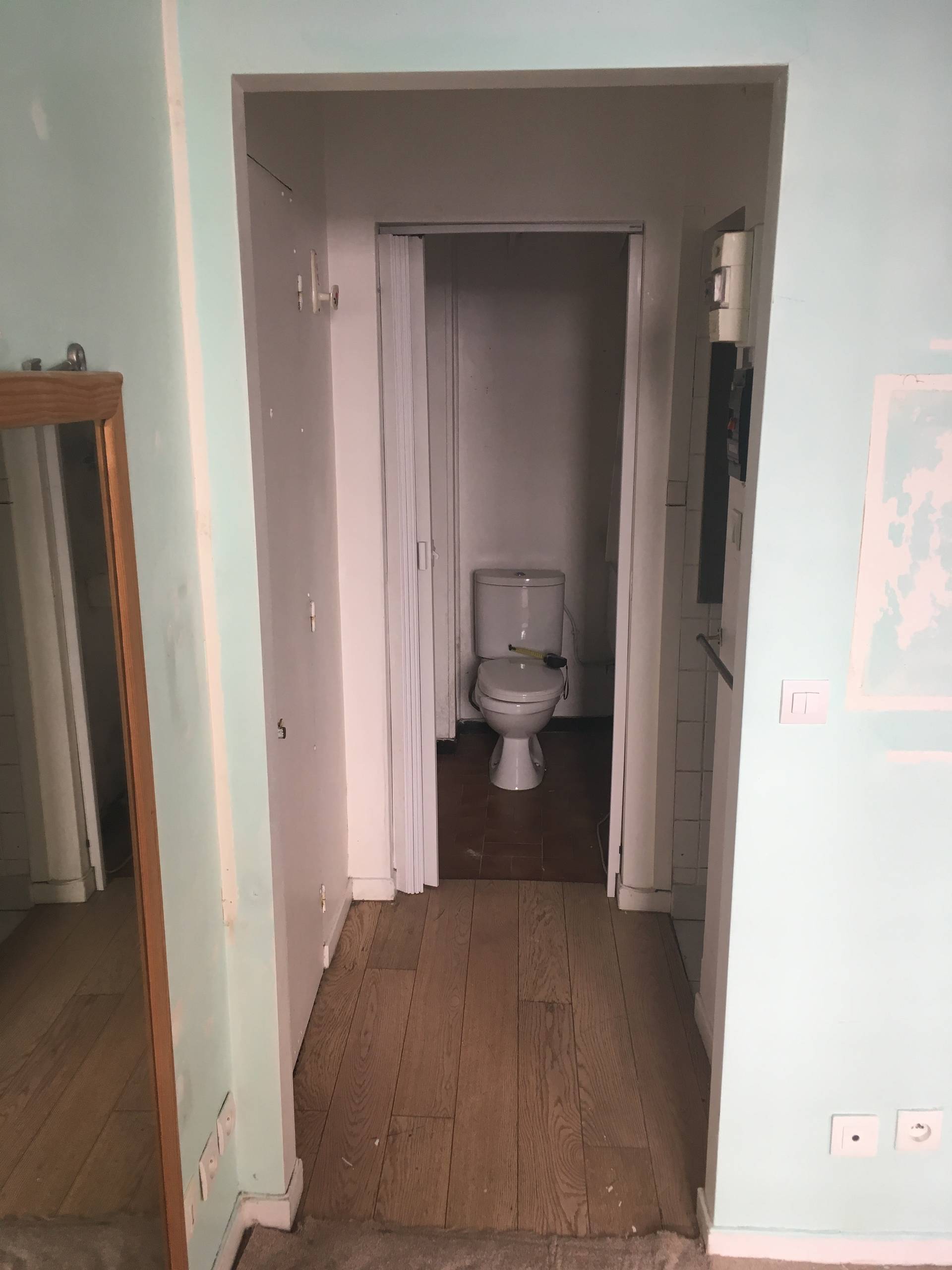 Avant. Voici l’ancienne salle d’eau placée face à l’entrée, là où se loge désormais la cuisine.